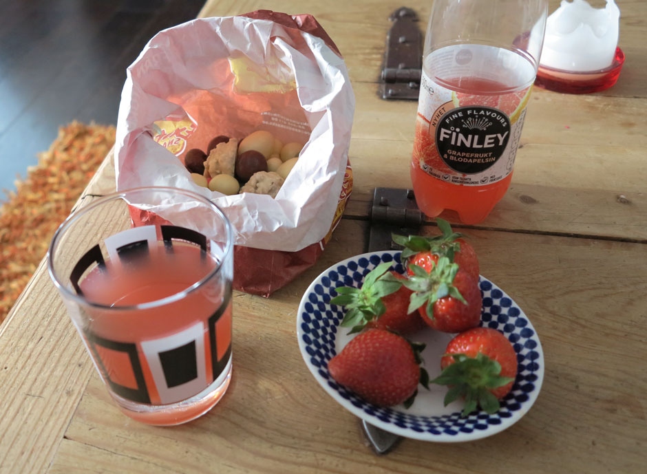 I fredags däckade vi i soffan med godis, jordgubbar och en ny dryck från Coca Cola som jag fått hem att testa. Finley – en vuxen läsk med mindre socker och fruktjuice i smakerna citron/fläder och grapefrukt/blodapelsin. Lite bitter i smaken så barnen var inte överförtjusta och själv hade jag föredragit en Cola, men helt ok ändå.