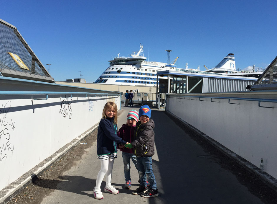 Idag var det öppet hus på Tallin-färjan MS Silja Symphony i Värtahamnen, bara ett stenkast från Gärdet där vi bor. Vi gick dit ihop med grannbarnen, och jag fick chans att inviga mobilkameran, barnen ritade, lekte i bollhavet och gick på Mumindisco. Så roligt att Junior vägrade gå därifrån. Från att skutta runt ORKADE han inte gå en meter. Det blev en lång promenad hem. Tidsmässigt. Vi får nog åka färja någon gång då besöket var en sådan succé.