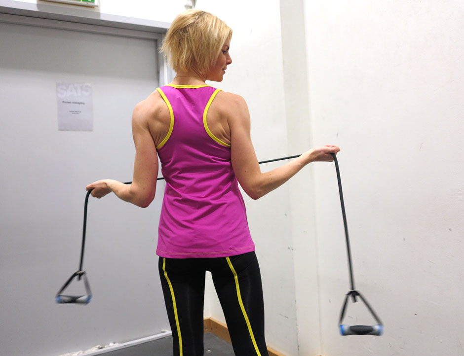 Muskler som känns bra att aktivera då jag till största delen av dagarna sitter vid datorn och kompletterade med gummiband för att riktigt komma åt mellan skulderbladen. Lätt och skön träning för att stärkande upp hållningsmusklerna, och trevligt med (om än tyst) sällskap av andra.