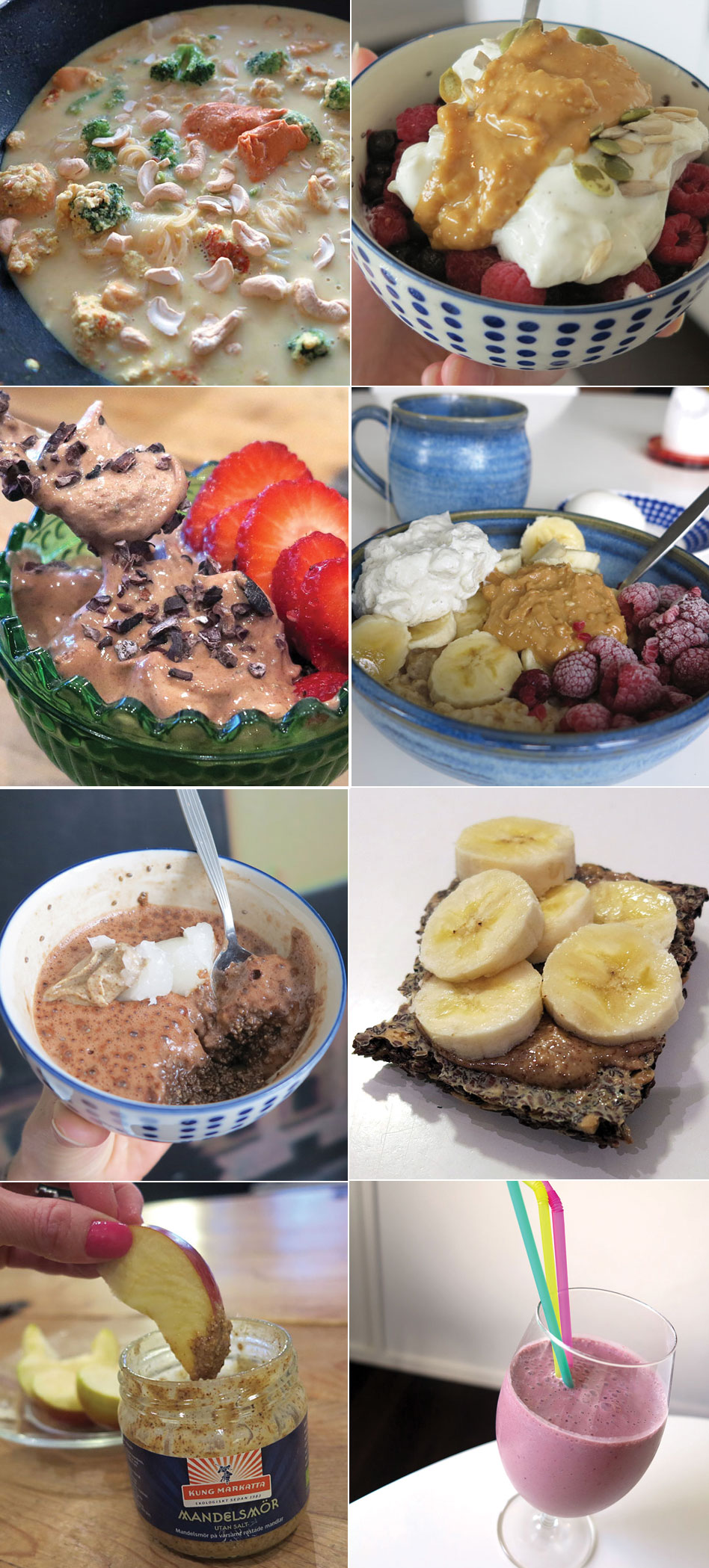 Det här kan bli bloggens snabbaste recept. Häll valfria rostade nötter i en mixer, kör till önskad konsistens (jag själv gillar lite crunchy), klart! Sist tog jag vanliga salta, skalade jordnötter, men är du riktigt huslig kan du ta vilka nötter som helst, rosta i ugn eller i en panna och sen mixa till smör. Smaksätt gärna med kokosolja, kakao, salt eller vaniljpulver. Gott till mycket: