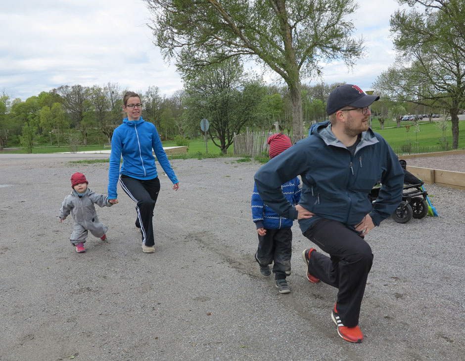 Klockan är 6 i skrivandets ögonblick men jag kan inte sova. Hjärnan är full av intryck och hjärtat av glädje. Jag har mycket att berätta om första dagen vid ”Frisk & Stark Familj” men börjar med mitt och Millas pass ”Get OUT to workOUT family” som startade upp eventet och sponsrades av företaget Isbjörn Of Sweden. Passet betyder mycket för oss eftersom det var där vårt samarbete började förra våren, med liknande pass fast bara för vuxna i Humlegården. Men att ha med moment i stationerna för barn är inte alls svårt att få till – speciellt inte på en lekplats.
