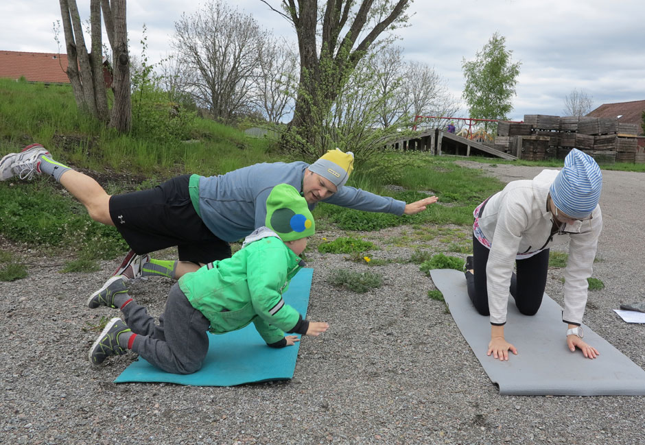 Hälsade som hundar och mycket annat. Många övningar mer utmanande för vuxna än för rörliga och starka barnkroppar.