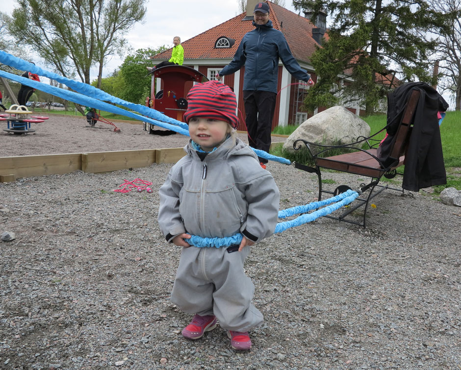 Det är bara fantasin som begränsar. Och miljön. En lekplats är som sagt ett perfekt gym för både vuxna och barn, men även naturen. Här på Wenngarn blir man verkligen inspirerad till kullerbyttor och löpning på stora gröna fält. Idag fortsätter roligheterna och jag berättar mer sen.