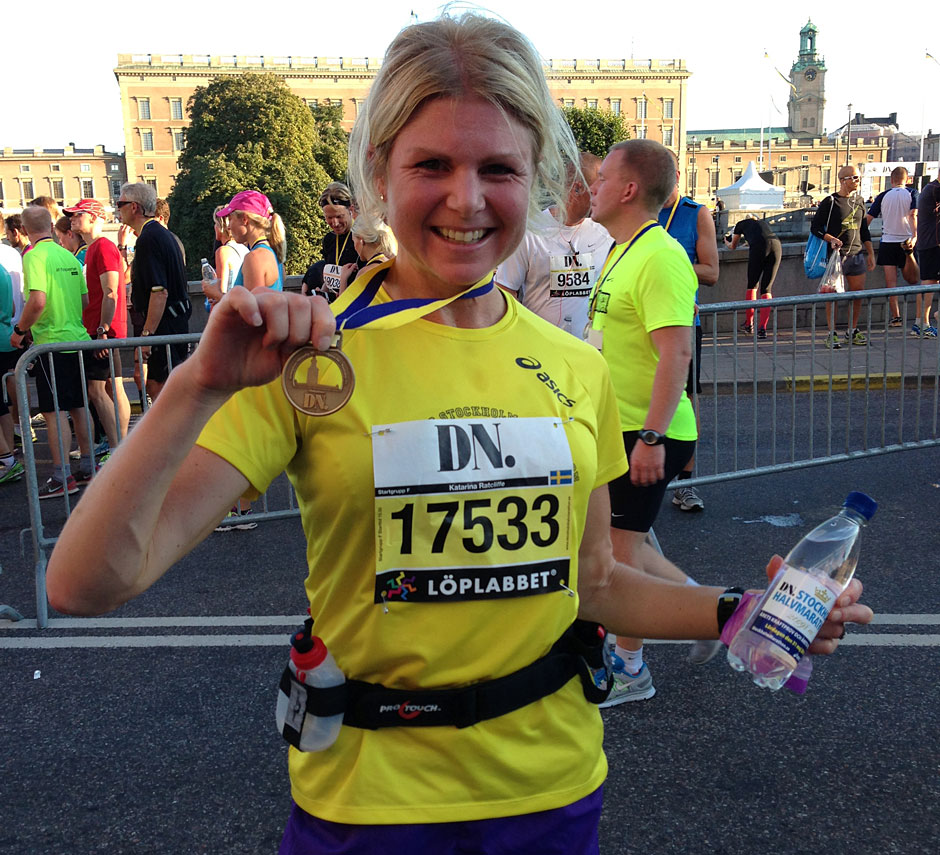 6. Sist men inte minst – ha kul, njut av stämningen och ladda mentalt med en positiv inställning och så lite prestationskrav som möjligt på dig själv. Då kan det inte bli annat än bra. Känns allt rätt kommer du ändå dras med av stämningen och kunna prestera fint. Måla gärna upp en inre bild av ett roligt lopp,  något jag hade vid Stockholm Halvmarathon på bilden ovan, och se dig själv springa i mål redan idag.