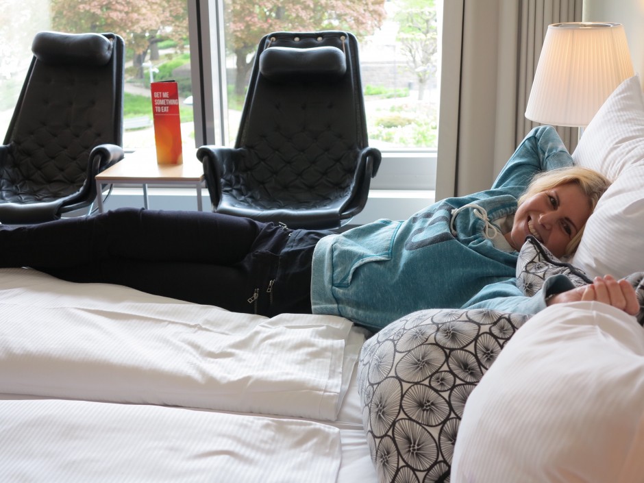 Igår började vi dagen i lugnt gemak ihop med tvillingarna. Långsam frukost och parkhäng innan Jonas kom hem och skjutsade oss till Clarion Hotel Sign mitt i centrum. Jag har varit på hotellet ett par gången på olika pressträffar men aldrig sovit över. Bland de finaste hotell jag bott på där jag som vanligt började med att provligga sängen. Mycket väl godkänd!
