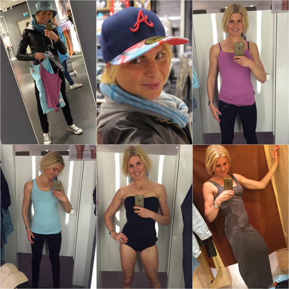 Sen shopping. Kattis hade en lång lista då utbudet i Östersund är betydligt mindre än Stockholms, men själv är jag en dålig shoppare trots trendinriktningen på bloggen. Men det gäller träningskläder. Därför bra att Kattis drar ut mig på vår årliga runda som den här gången var extra kul. Visst ska man kunna klä sig hur man vill oavsett kroppsform, men tidigare har jag automatiskt undvikt plagg som varit tajta över diastasmagen. Jag kom på mig själv att kika på ”fladdriga linnen” när det plötsligt slog mig att jag faktiskt har en midja nu. En skrynklig, ärrad mage som jag känner mig helt bekväm med. Långt ifrån någon modellmage, men som jag tycker så mycket om och som har en historia jag inte vill vara utan.