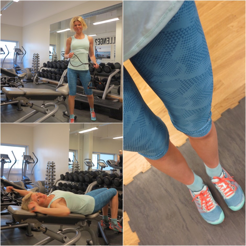 Morgonen efter inledde jag traditionsenligt med träning i hotellgymmet. Det är inte mycket jag kunde göra p.g.a. magen med den utrustningen som fanns, men alltid lika skönt att starta upp dagen med att röra sig. Lite gummibandsträning och invigning av kläder jag fått hem att testa från Lidl innan…