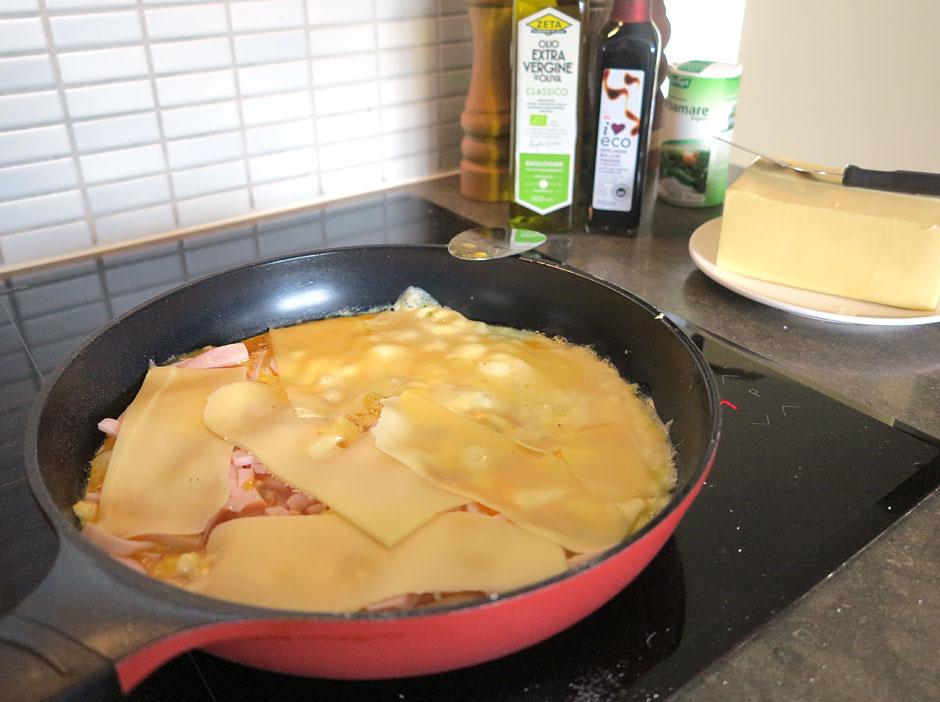 Både jag, Jonas, Hugo och Hampus älskar scrambled egg, så det gör vi en stor sats av varje morgon. Ett helt 12-pack ägg går åt + ost och strimlad kalkon (på halva eftersom Hampus och jag gärna kör utan).