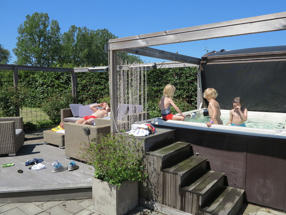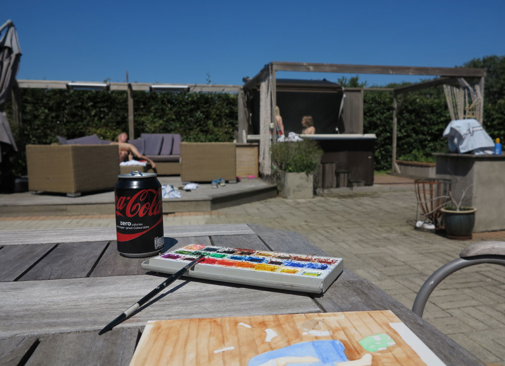 Sen hängde vi ett par timmar vid poolen innan det var dags för avfärd. Barnen badade, Jonas solade, jag sög åt mig av Kiviks konstnärliga vibbar och målade det sista till barnboken om Dante inför mötet med Caroline nästa vecka.