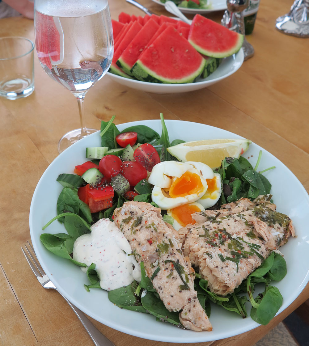 6. Mat. Proteiner, goda fetter, vitaminer och kolhydrater behövs ju också för att bygga upp kroppen och hålla sig frisk. Under sommaren är det lättare att hitta fräscha och närproducerade råvaror + att vi får mer D-vitamin från solen samtidigt som många ”unnar sig”. Glass och en iskall Cola – saker jag också äter/dricker oftare. Men som jag skrev i ett tidigare inlägg – dåligt samvete och ångest bryter ner och skadar kroppen mer än dessa ”onyttigheter”.