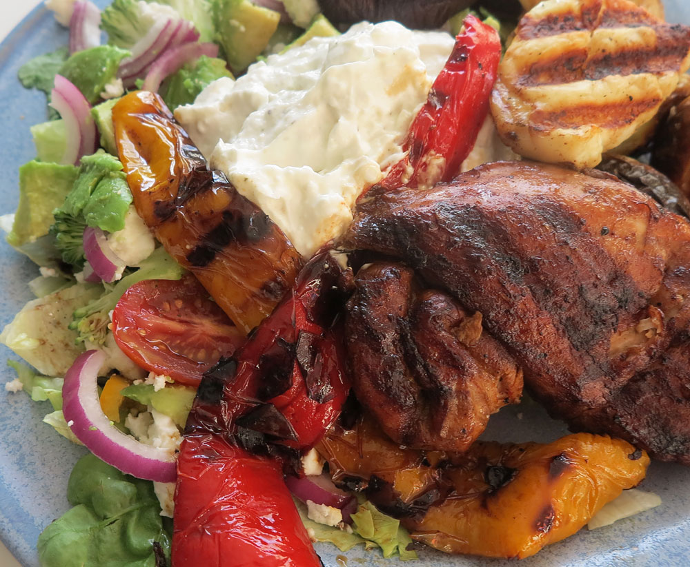 Grillmat! Jag får aldrig nog. Skulle kunna slänga ut ugn och spis och laga all vår mat på balkongen, men det skulle kanske bli kallt att stå där ute vintertid. Bäst känsla är det ändå sommartid och nu finns det som störst utbud på goda grönsaker att ha till – något jag också gärna frossar i.