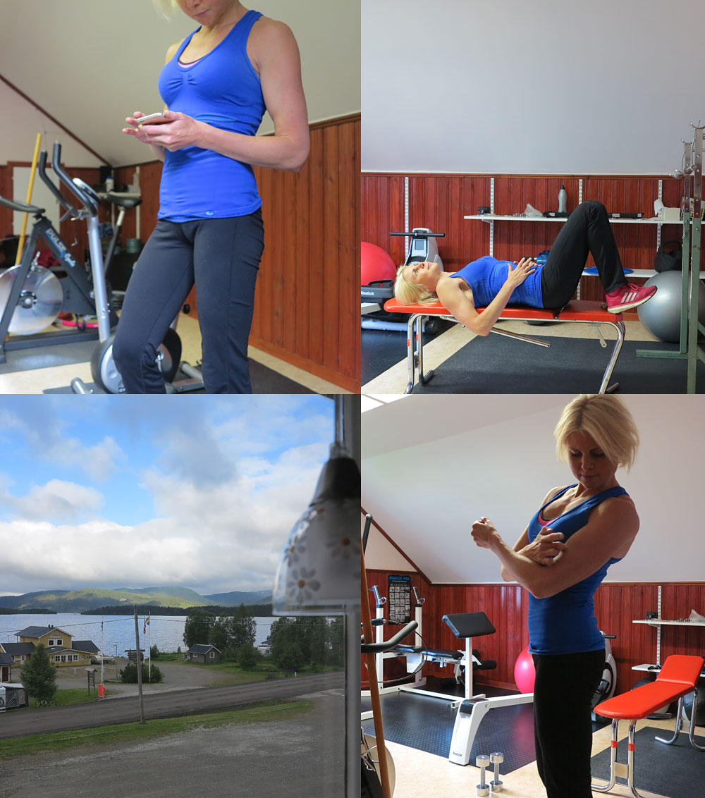 Om du inte kör på i högt tempo med cirkelträning eller superset blir det en hel del tid mellan varje set. Styrkelyftare kan vila i flera minuter för att hinna ladda maximalt inför varje lyft och själv tar jag också lite längre pauser när jag tränar tyngre. Här i Jorm kan jag spela egen musik och skaka loss med lite dans mellan redskapen som igår morse, men det blir det inte lika utsvävande hemma i stan.