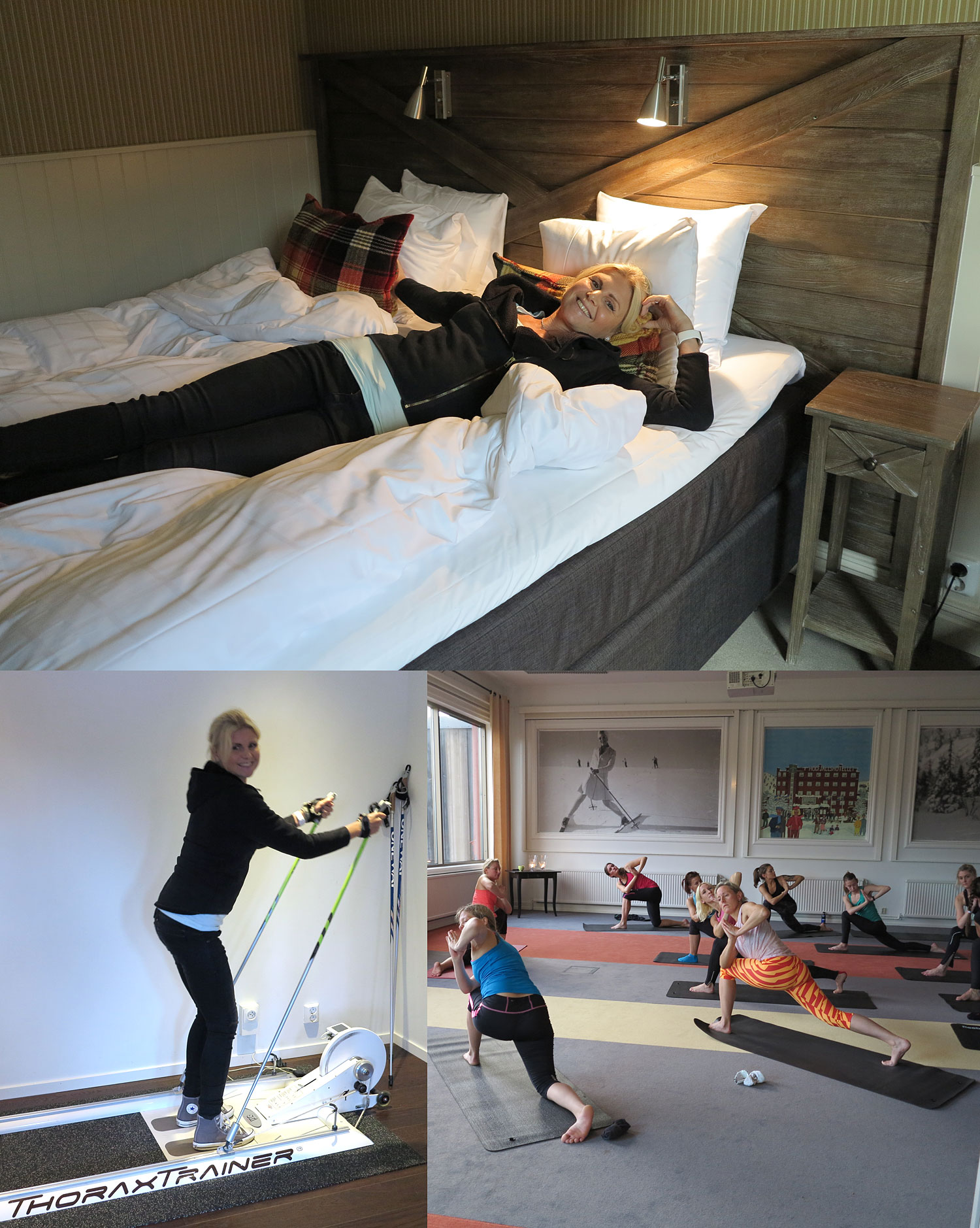 Som vanligt började jag med att provligga sängen. Fluffig och mjuk – högsta betyg. Nr 2 är att spana in gymmet, riktigt bra det också, men jag hoppade mer än att testa ThoraxTrainern (skidåkning är ju ett måste i fjällen) och inledde eventet med yoga ihop med Cecilia istället. Det är hon och hennes man Joel, ägare av CrossFit Sälen, som arrangerar Hälso- och träningsweekend Sälen. Två fantastiskt varma och inspirerande människor.