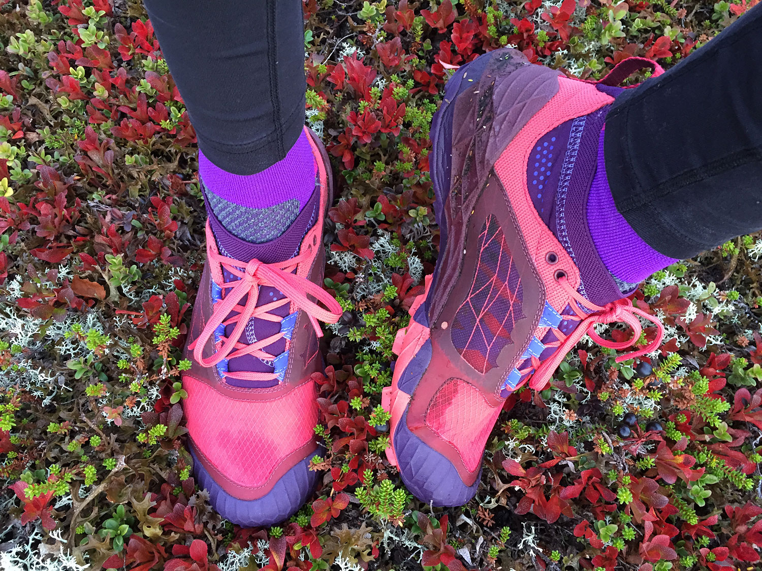 Det var premiärtest av skorna för mig i helgen och de funkade både fint i branten och var förvånansvärt sköna att springa i även på plan mark. Lite synd att gegga ner de härliga färgerna, men värt för torra fötter efter myrturen.