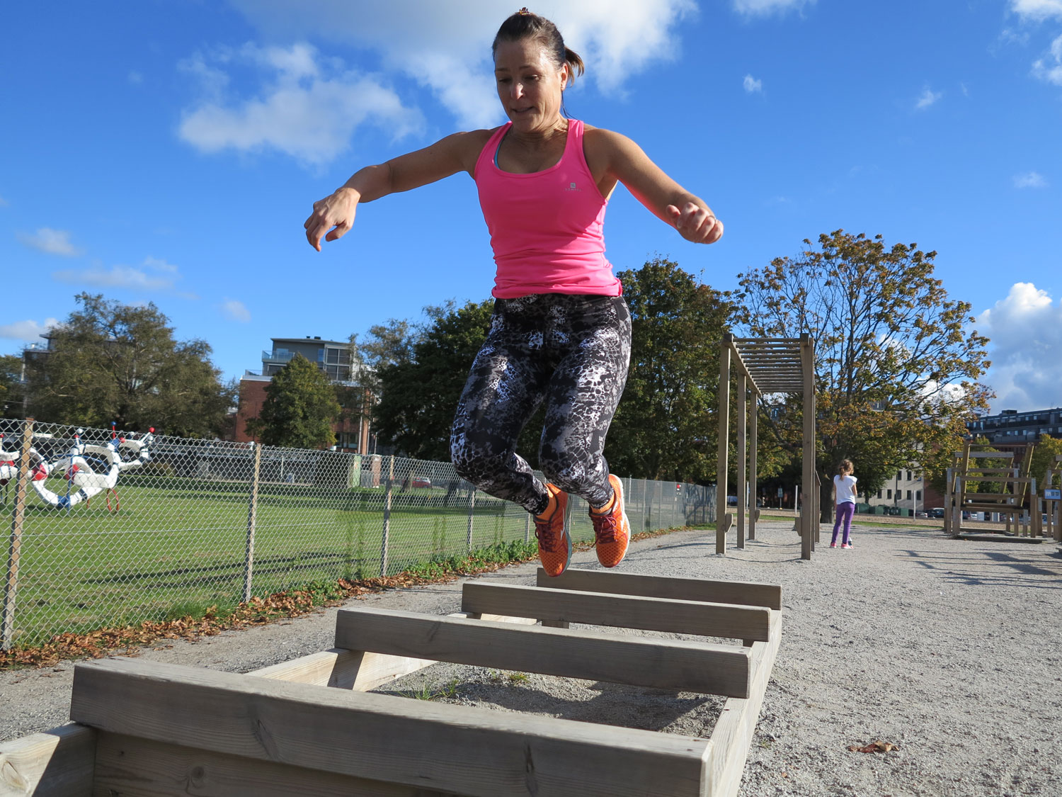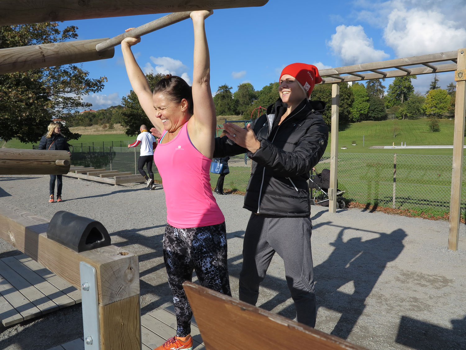 Som jag nämnt finns det många skäl att träna i utomhusgym, speciellt en vacker höstdag med starka energigivande färger, fräsch luft, sol och ändå lagom temperatur för att inte svettas ihjäl. Skönt för både kropp och själ, dessutom gratis om du inte tränar med personlig tränare. Det gjorde Annika med mig i helgen på Gärdet. En fantastisk dag för utomhusträning – både för tränande och PTs.