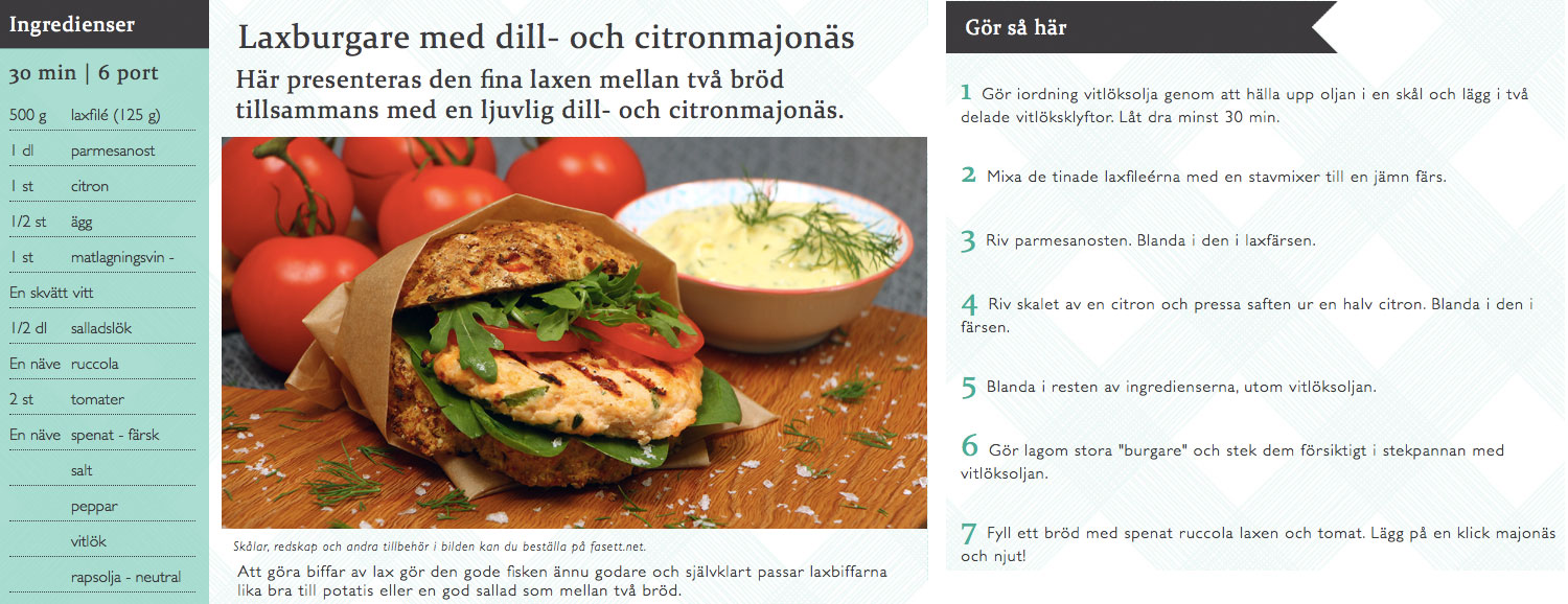 Laxburgare – ett av alla lockande recept från Johanssons kök som jag ser fram emot att testa. Även om jag inte har möjlighet att följa en hel veckomeny eller ställer krav på att min och familjens kost alltid ska vara gluten- och laktosfri, är det grymt att ha tillgång till färdiga inspirationsrecept och inköpslistor.