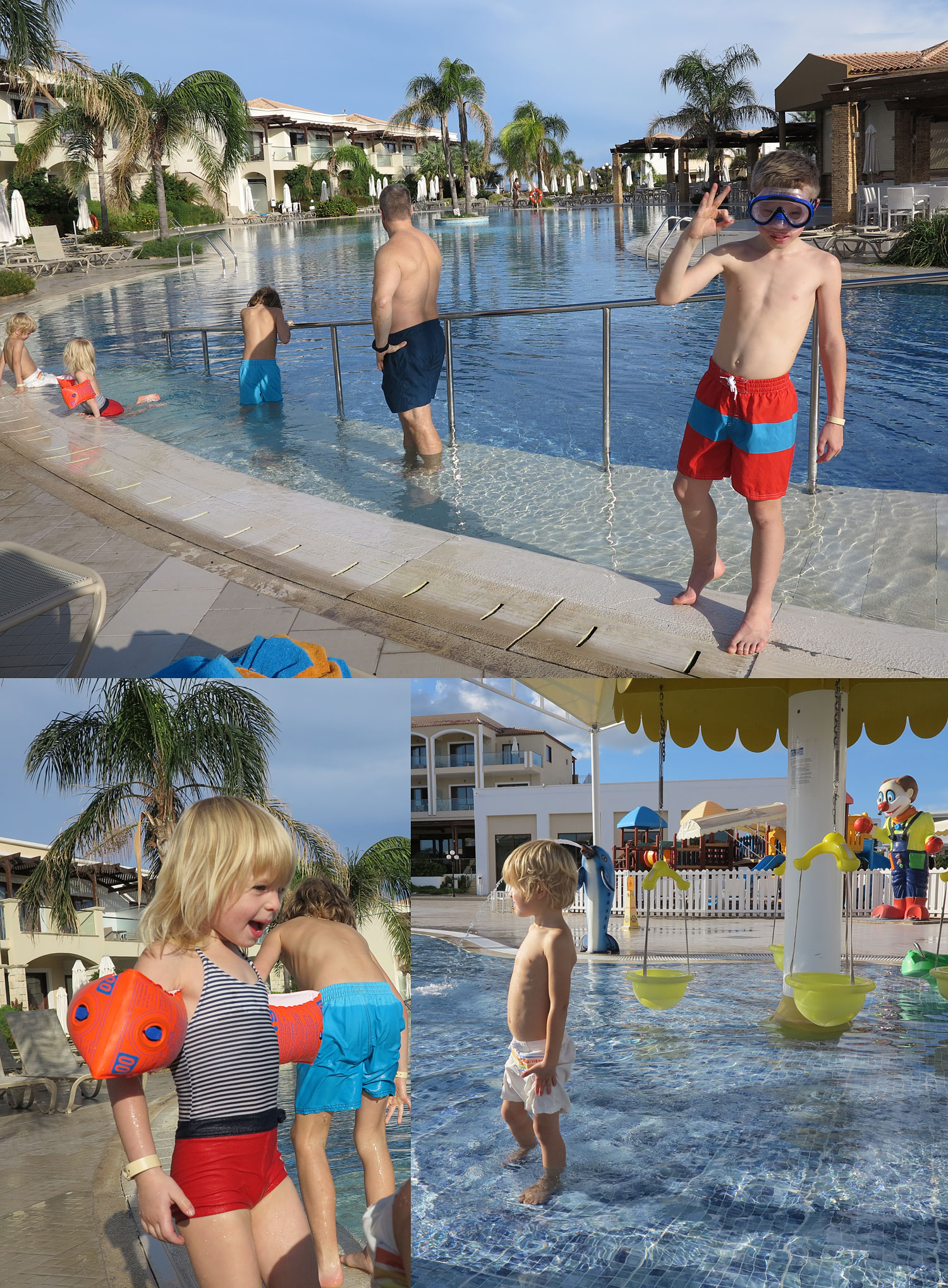 Den fajten kommer vi nog slippa den här veckan. På Mythos Beach Resort finns verkligen allt barnen kan drömma om, ja vi vuxna också. Stort poolområde – även med innomhuspool, lekplats, minigolf, gym, fullspäckat gruppträningsschema med bl.a. morgonyoga och vattengympa, fotboll-, basket- och tennisplan, pingisbord, stor lägenhet med 3 sovrum och all inclusive med valfri mat och så mycket glass en orkar äta.