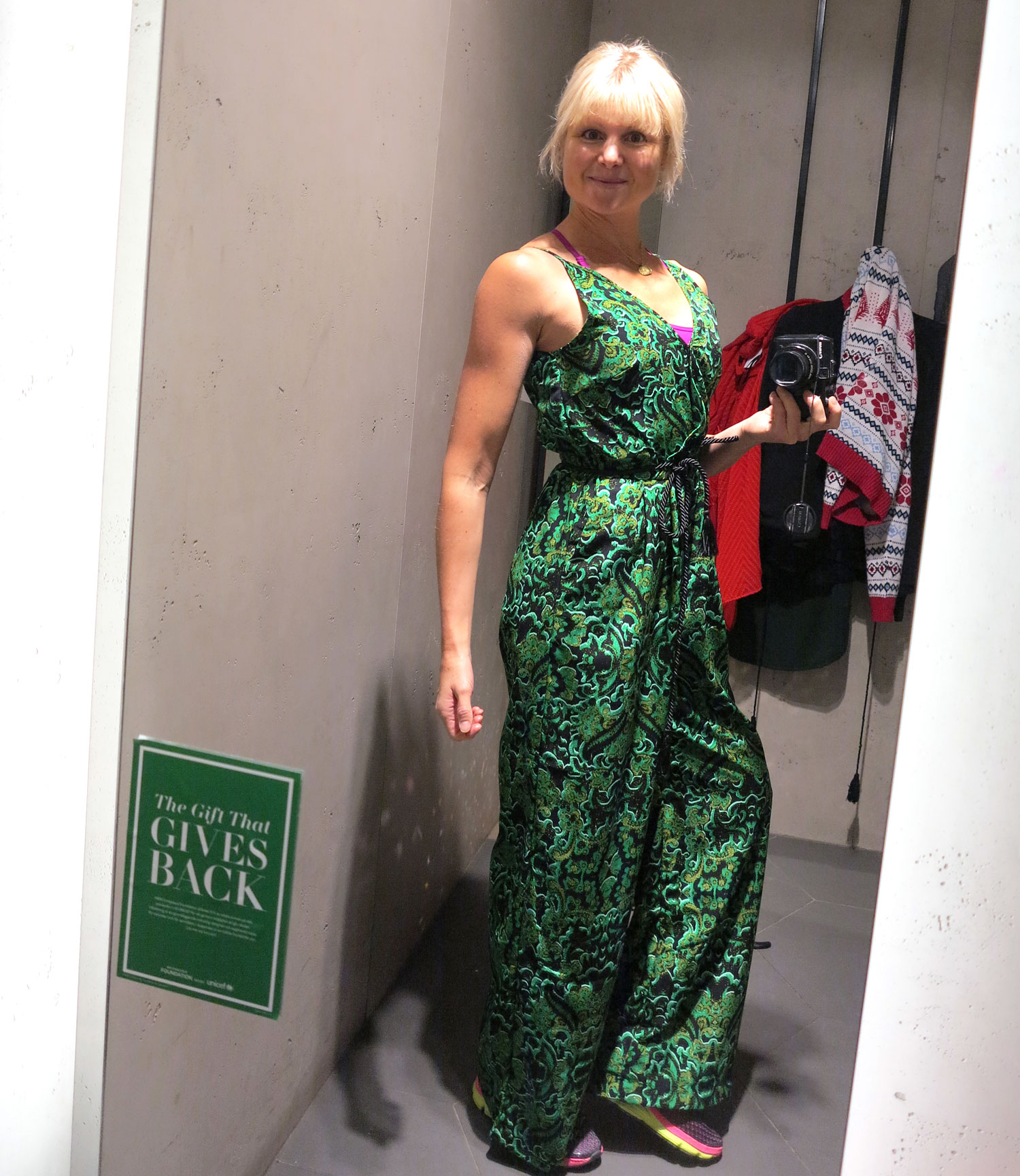 Direkt från yoga till HM där jag provade en glittrande paljettkjol. Passande till nyår, då utan Kari Traa-outfit under √