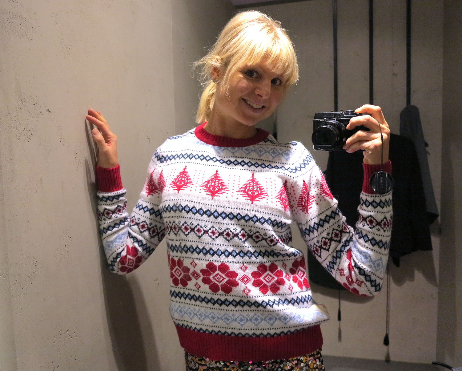 I år hade Jonas köpt tomtedräkt till Junior och en pepparkaksklänning till Jonna, men det gillades inte. Junior vill såklart också vara pepparkaksgumma och grät stora krokodiltårar hela gårdagskvällen. Så ledig från skolan gav jag mig idag ut på jakt vilket resulterade i shopping av julkläder till mig själv istället. Pepparkaksklänningarna var redan slut så vi får hitta på någon smart lösning, men jag är ändå nöjd med det jag hittade…