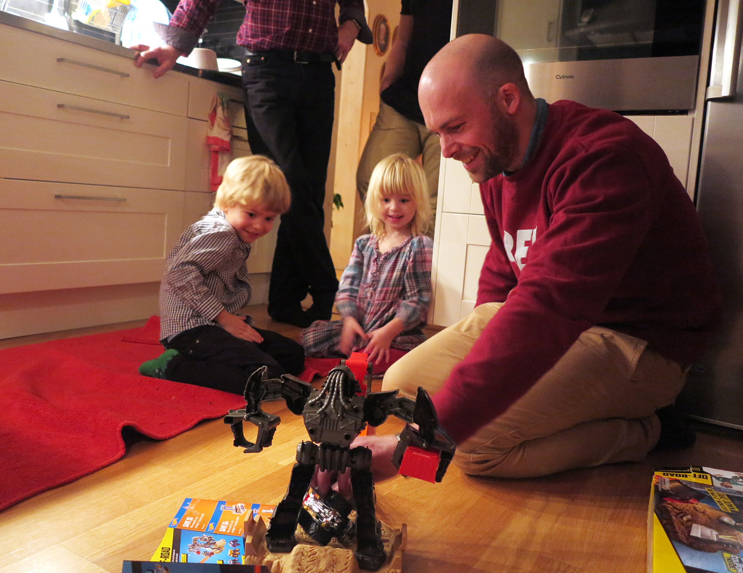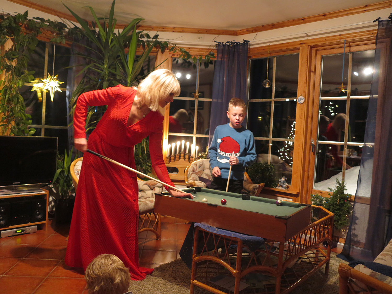 Efter tomtens besök invigde vi julklapparna. Morbror Jonas byggde bilbana med Junior, Hampus är en mästare på Lego och jag tog upp gamla takter i biljard mot Hugo. Årets bästa julklapp enligt mig eftersom det inte har någon digital skärm och hela familjen tycker det är kul att spela.
