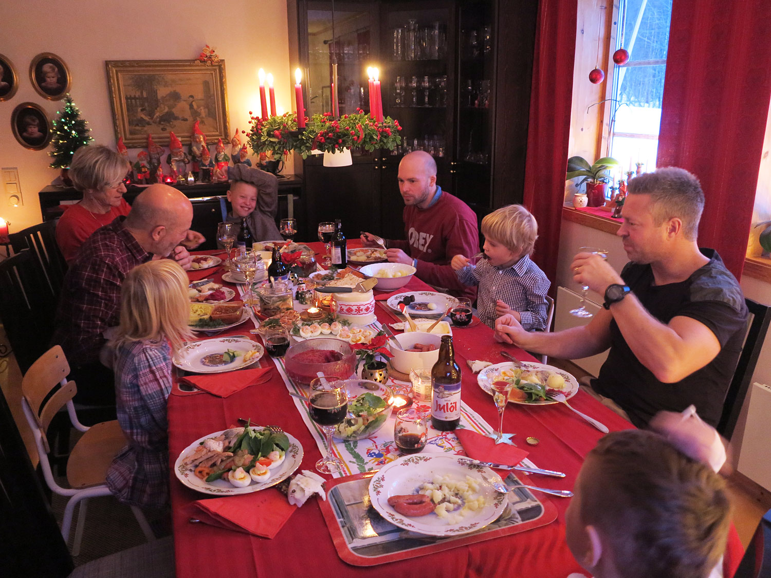Jag förstår de som flyr landet och julklappshysterin samtidigt som jag inte vill byta ut allt detta. En dag om året vill jag ha det där röda och överflödiga av godsaker, pynt och att skämma bort de jag tycker om. Här bilder från vår julafton i Jorm.