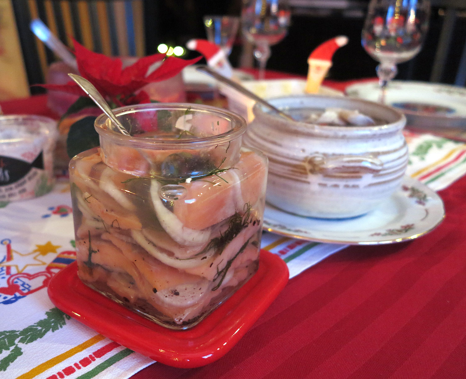 Vi åt en massa gott i flera omgångar. Sill, röding och annan kall mat mitt på dagen och den varma maten med revbensspjäll, köttbullar och Jansson senare. Goda nyheter på årets julbord var inlagd sill med lingon och inlagd röding. Annars tycker jag det enklaste är bäst, som ägghalvor med majonäs, rökt röding och vanlig mjölkchoklad. Mina föräldrar har fått närmare 10 askar olika sorters choklad så det borde räcka året ut.