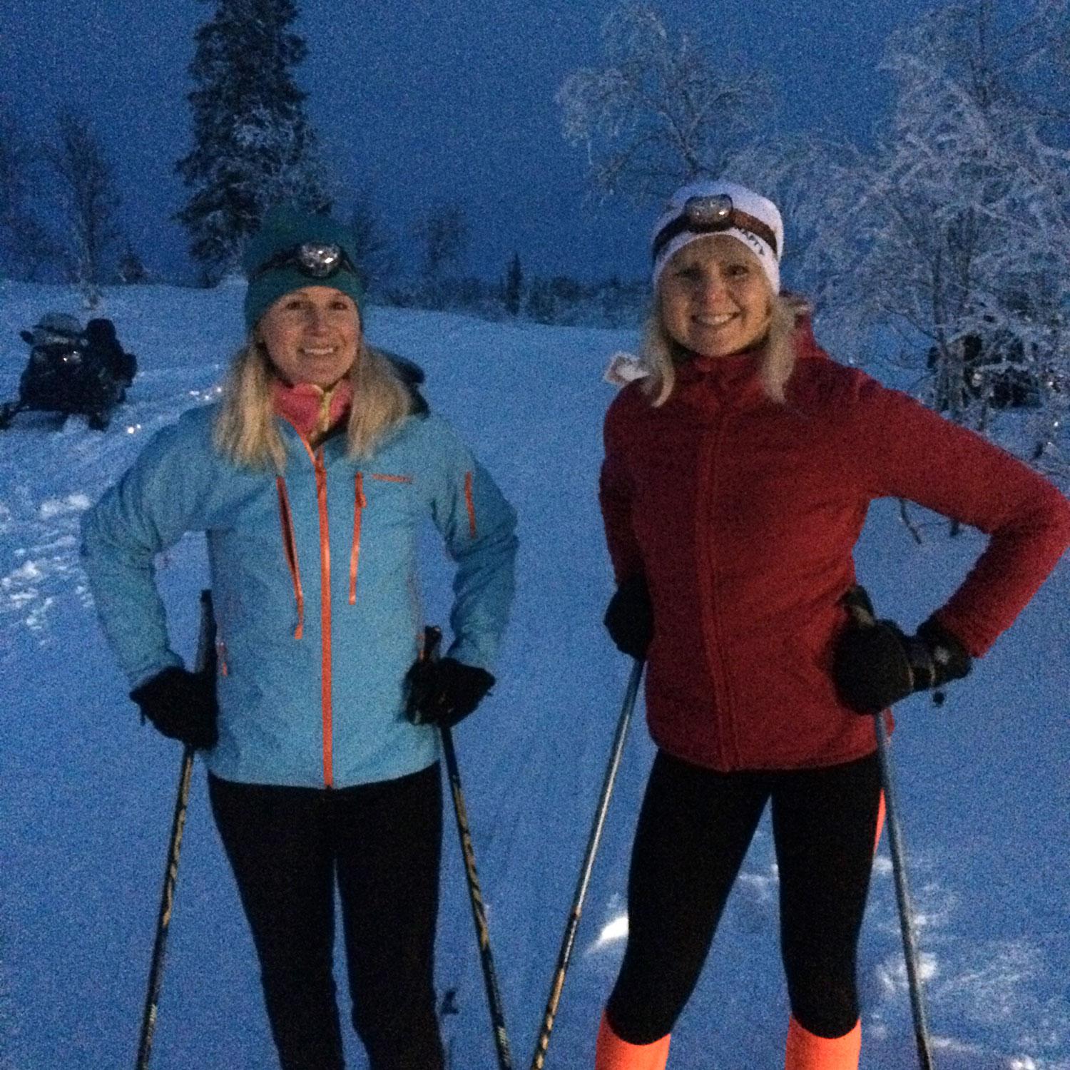 Jag, syster Mia och Jonas lastade in våra längdskidor i takboxen och åkte upp på fjället, trots att det var bäcksvart ute, sugna på att provåka. Med pannlampa funkar det och jag har riktigt längtat efter att glida runt med starka skidtag i snön. Att testa om magen klarar av det efter operationen eftersom den jobbar en hel del i stakningen, men det var inga problem alls och jag är så glad.