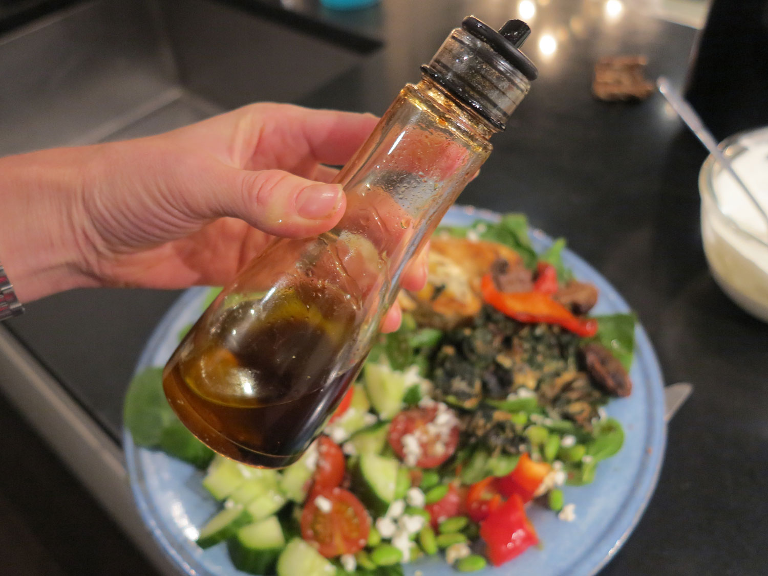 ♥ Vinegrette. Min gör jag av balsamvinäger, olivolja, peppar och örtsalt.