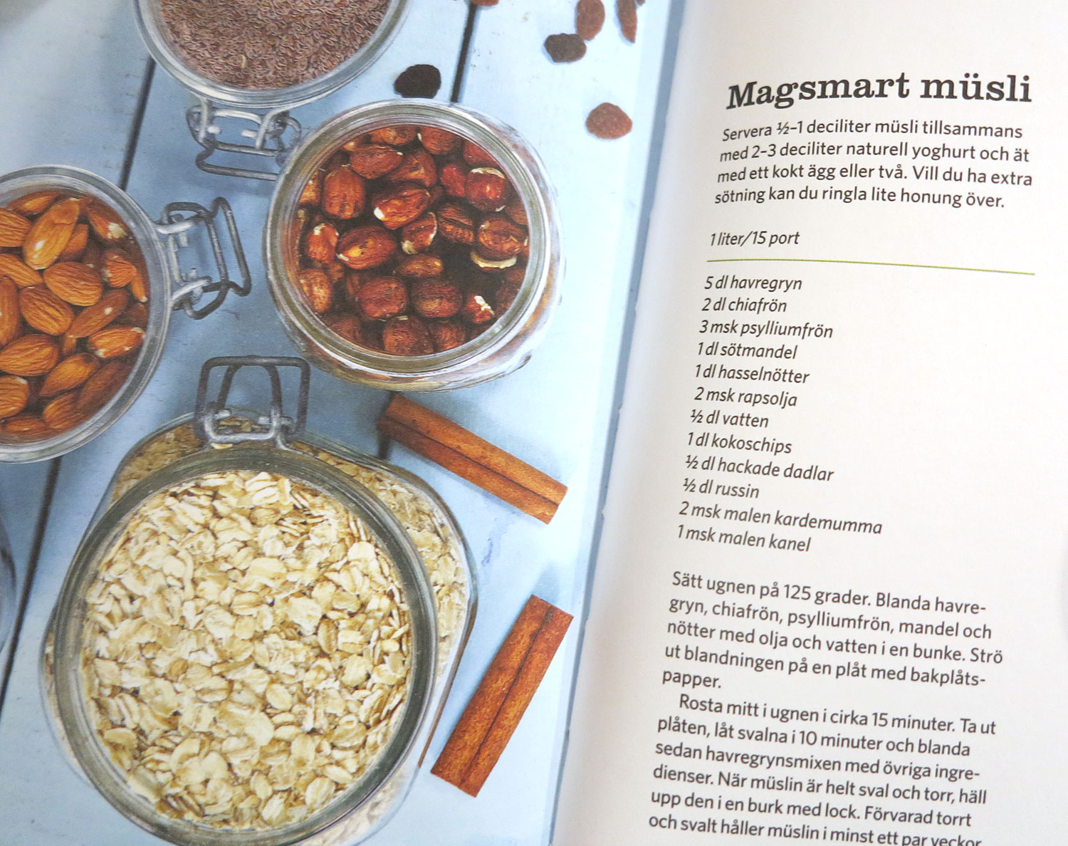 I boken får du även förslag och recept på olika måltider och mellanmål. Som en magsmart müsli och chiasylt, enligt bokens benämning ”hälsosylt”.