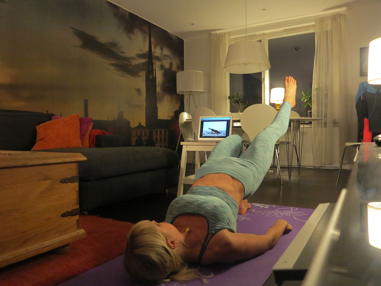 En halvtimme tidigare än vanligt, innan väckning av alla barn, klev jag upp för att yoga framför datorn och Yogobe.
