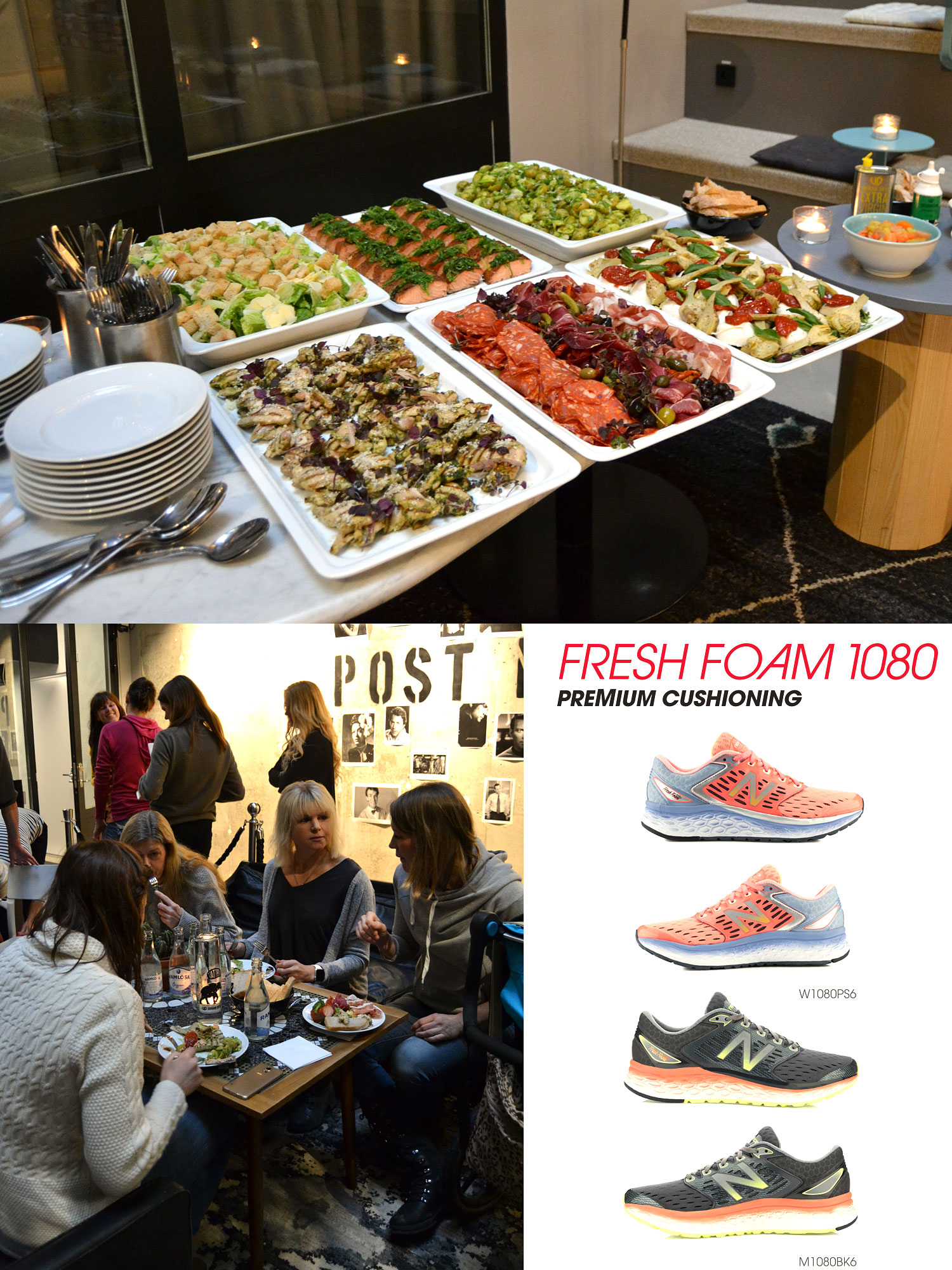Förutom att klämma och prova skor fick jag chans att mingla över en fräsch lunch på Urban Deli. Vänner och bekanta, god mat och skor – tre fina önskningar i ett. Till höger dam och herrmodellen av Fresh Foam 1080 som vi fick prova ut. Som du ser är det dammodellen som lyfts fram mer med läckert lysande färger.