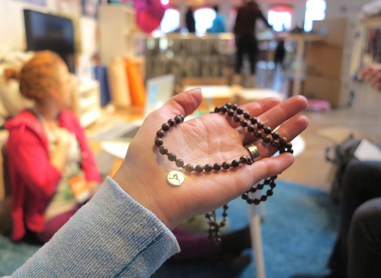 Jag fick också en mala av mina kollegor, ett vackert handgjort halsband i sandelträ. Med det runt halsen och digital yogaguidning får jag ett eget litet Yoga Game här hemma med barnen. Trevlig helg!