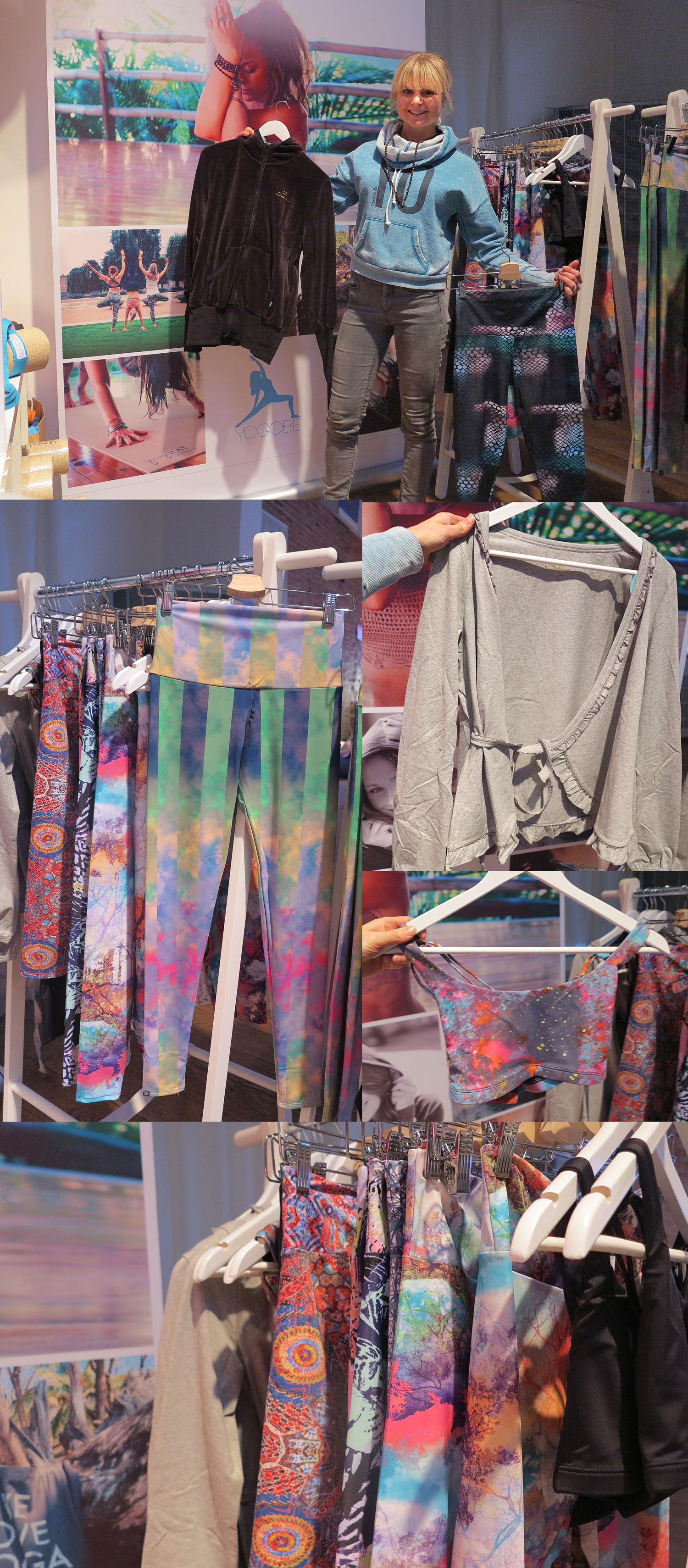 Dessutom fick jag se lite av Yogobe´s kläder, smycken och andra yogaprylar som de annars bara säljer i sin webshop då vi packade upp och fixade i montern. Fräcka tights från Onzie, mjuk cardigan och velour-plagg från Sobea. Märken som är nya för mig, mer inne i ”svett-och-snor-träningsbranschen”.