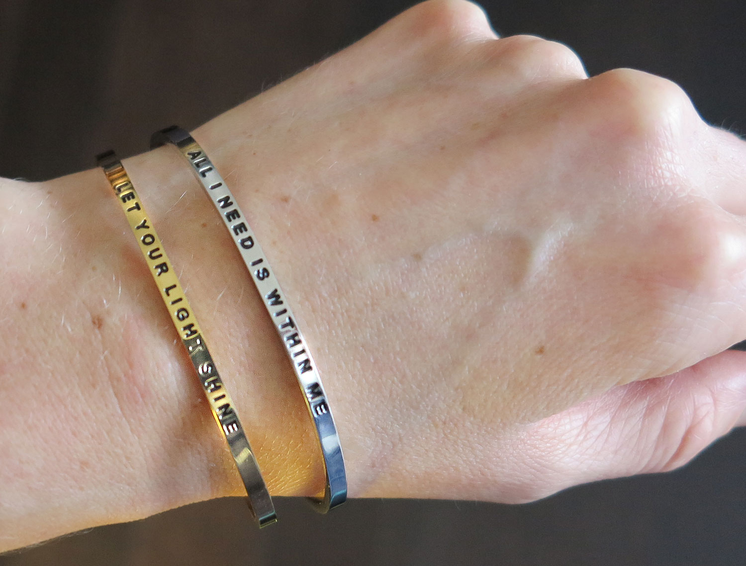 Mantraarmband med olika citat, i guld, silver och rosé, finns att köpa i Yogobe´s webshop för 379 – 449 kr.