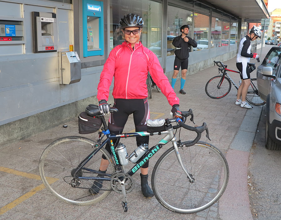 Träning också i form av rätt utrustning och att lära sig klä sig rätt för olika väder och distans. Där har jag Craft att tacka för kläderna som varit grymma och Silva för lamporna (som ändå inte behövdes eftersom vi bytte starttid till dagsljus). Inte för att tala om lånet av Bianca från gullig bloggläsare och cykelväskor av Johan från CK Medvind. Ovan gårdagens cykeloutfit.