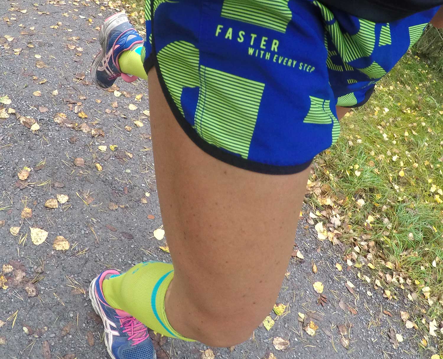 Själv tycker jag framför allt det är skönt att springa i shorts på sommaren. Känna vinden mot benen och få mer rörelsefrihet istället för att stänga in benen i ett par tights. Mina egna favoriter i garderoben är ett par från Reebok med peppande citat i mönstret: ”Faster with every step. Stronger with every rep”. Lite löjligt kanske, men jag går igång på sånt där.