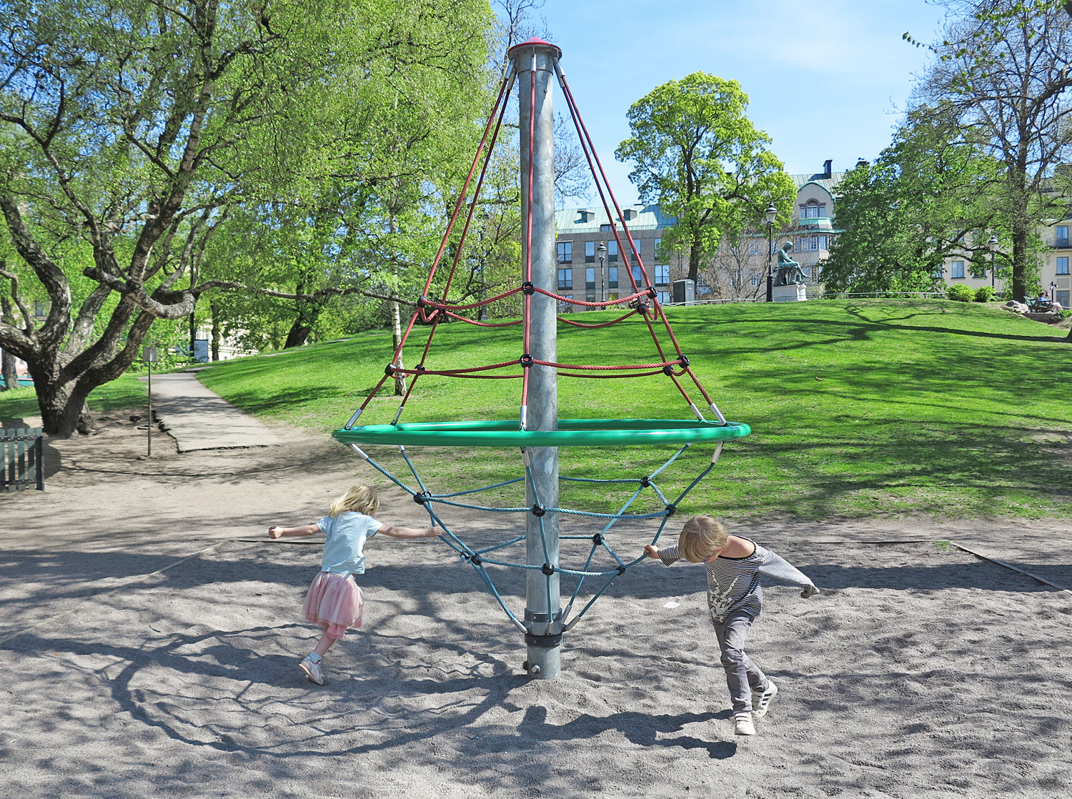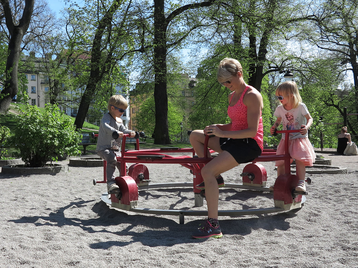 Flera stycken. Själv är jag nöjd bara jag får komma ut i solen vackra dagar som dessa, det krävs inte så mycket och speciellt Junior och Jonna kan tycka det är kul med hög pinnar. Det mesta blir ett äventyr i deras sällskap och vi behöver inte ta oss så långt. I Stockholm finns så många fina parklekar med olika klätterställningar, karuseller och aktiviteter.