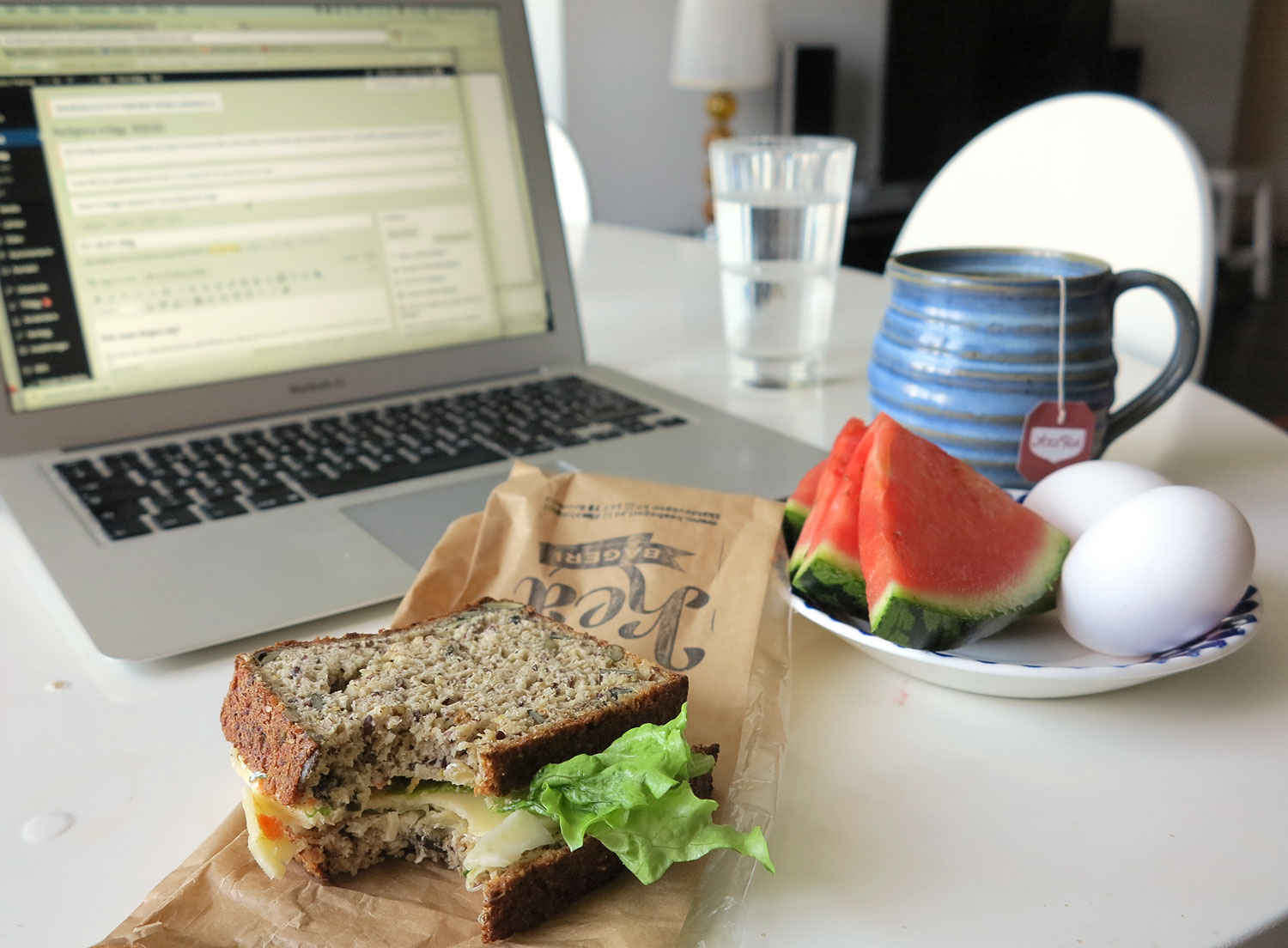 En lunchpåse med god ostmacka fick vi med oss också som jag åt med ägg, melon och te framför jobb och studier hemma. Tidseffektivt som sagt, men mackan var bara för presseventet och inget som ingår annars.