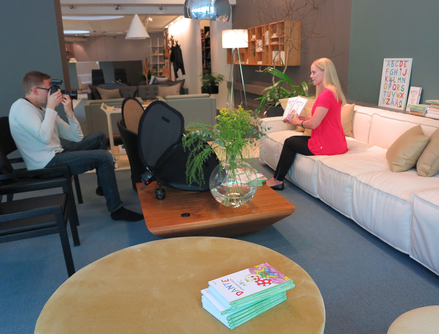 Igår sågs vi i möbelföretaget Swedese´s showroom där Daniel Hutmacher plåtade pressbilder av för oss inför lanseringen. Daniel är superduktig och lokalen ljus, stor med olika miljöer, snyggt inredda med deras möbler. Helt perfekt, lyxigt bekväm fotomiljö och en mycket rolig morgon.