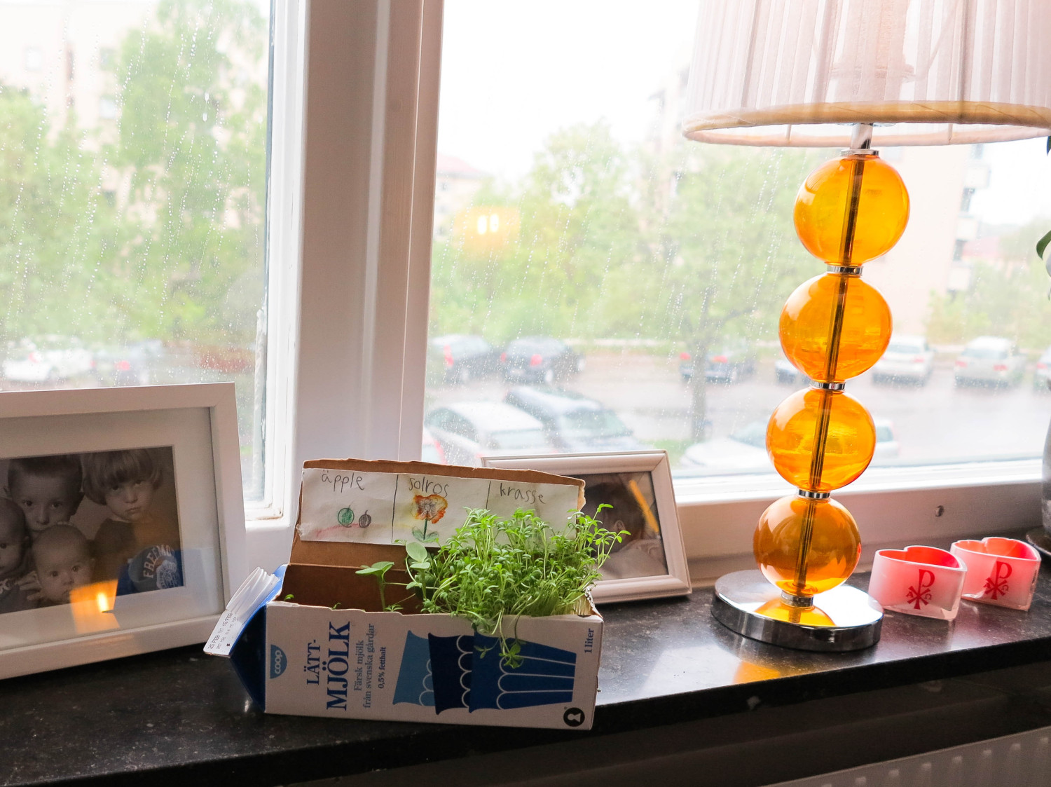 Sen har dagen fortsatt i samma lunk. Jag har vattnat Hampus söta och snart överbevuxna plantage av krasse, solros och äppelträd, tvättat kläder, badat av de små och skrivit listor. Resultatet av sistnämnda kommer du få se i morgon bitti. Som kontrollmänniska är alltid så skönt att ha struktur, det hjälper mot stress i vårt fullspäckade vardagsschema.