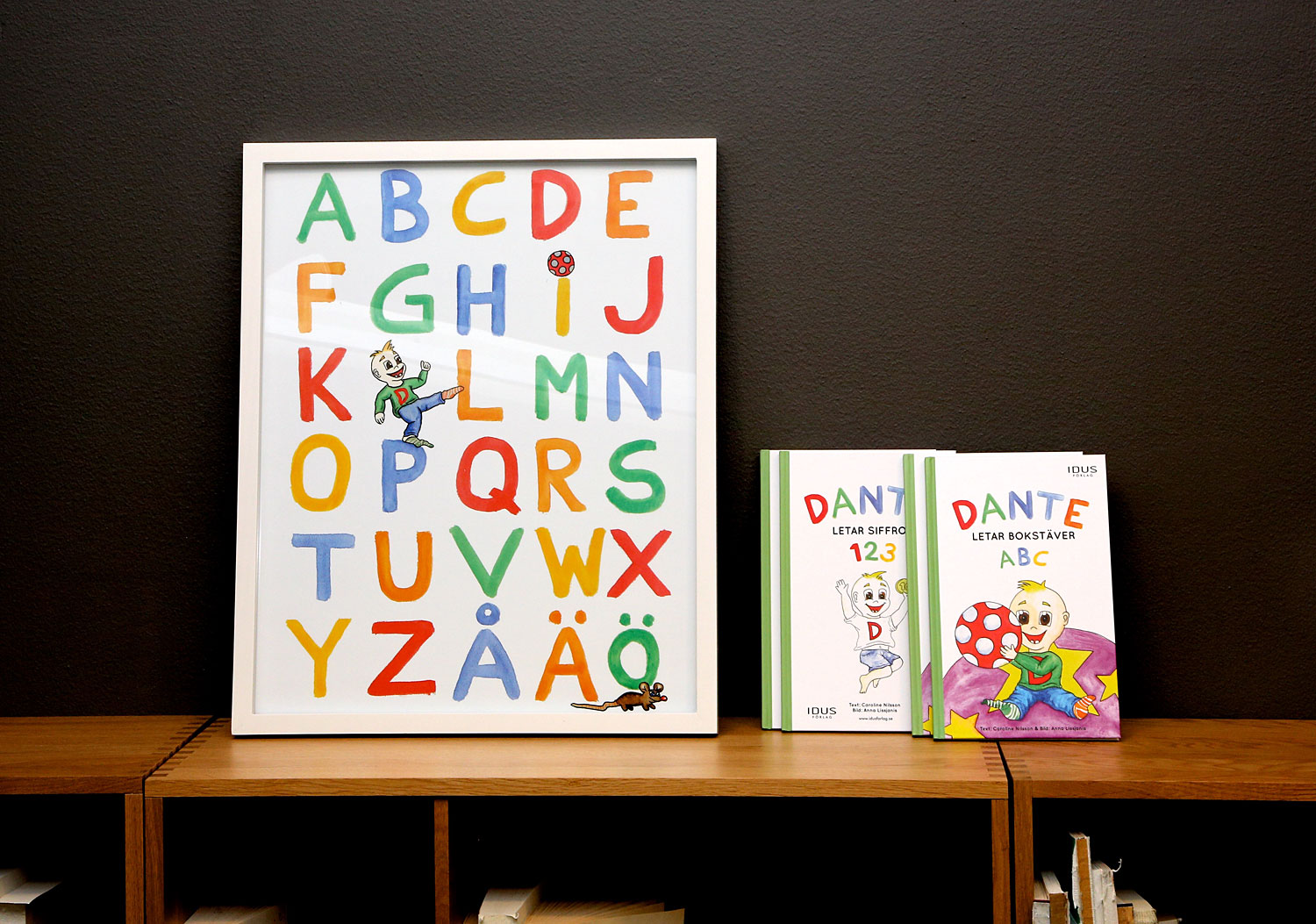 Dantes alfabetsposter som som du ser inramad på bilder får alla med sig vid köp av boken under boksigneringseventet, värd 119 kr. Fotograf av denna och översta bilden: Daniel HutmacherDet speciella med barnboken om Dante: