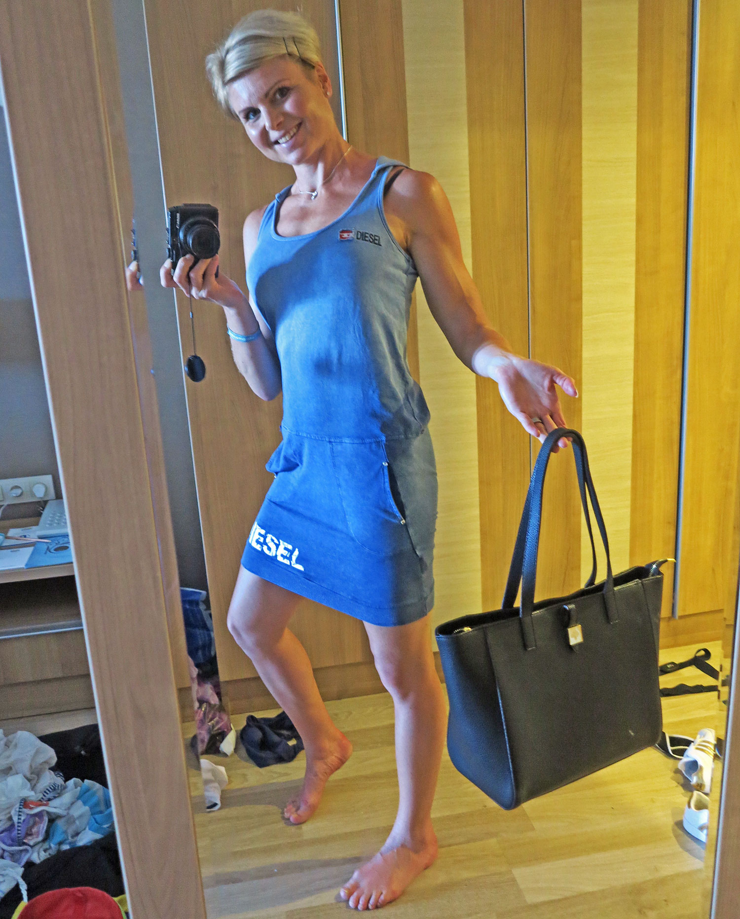 Och jag då? Inte för att jag bryr mig mycket om att äga dyra prylar och fina handväskor, men ett par hundralappar istället för uppåt 14 000 kändes ok för en Mulberry-väska som rymmer dator och annat. Fortfarande är ryggsäck det jag kommer använda mest, men när jag jobbar administrativt och springer på möten vill jag se mer business ut. Kanske har äkta märken bättre kvalité, men jag tycker det vi köpt både ser och känns hållbart. Dessutom räckte pengarna även till en skön Dieselklänning som känns ”Anna” och allt det andra vi shoppade till familjen.
