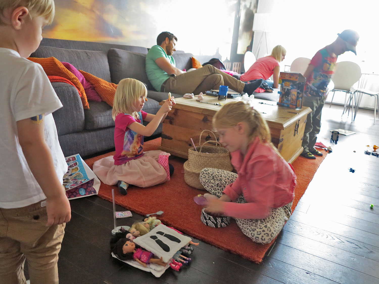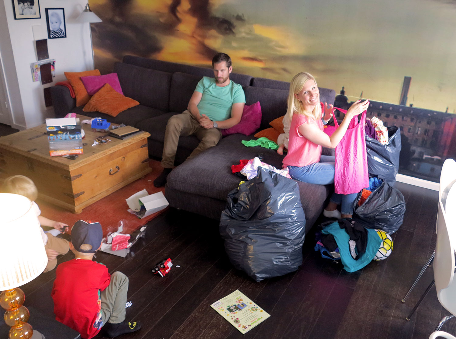 Medan Mia gick igenom säckarna fixade jag fika och kusinerna lekte. Oliva, Mias äldsta dotter som är lika gammal som Hampus, kommer bra överens med både tvillingarna och storkillarna. Super när vi alla är samlade som idag, vid jul, påsk och på sommarlovet.