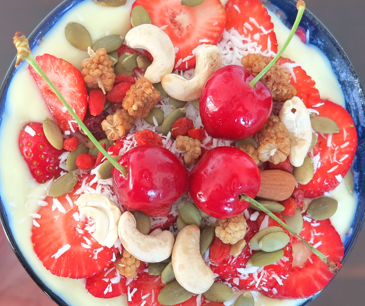 Proteinpudding Lemon Cheesecake. Underbar på min chiapudding ihop med färska jordgubbar, körsbär, nötter och frön. Som en sommartårta med lemoncurd. Rekommenderas varmt till sommarens snabbfixade mellanmål, ja till och med som efterrätt så god den var.