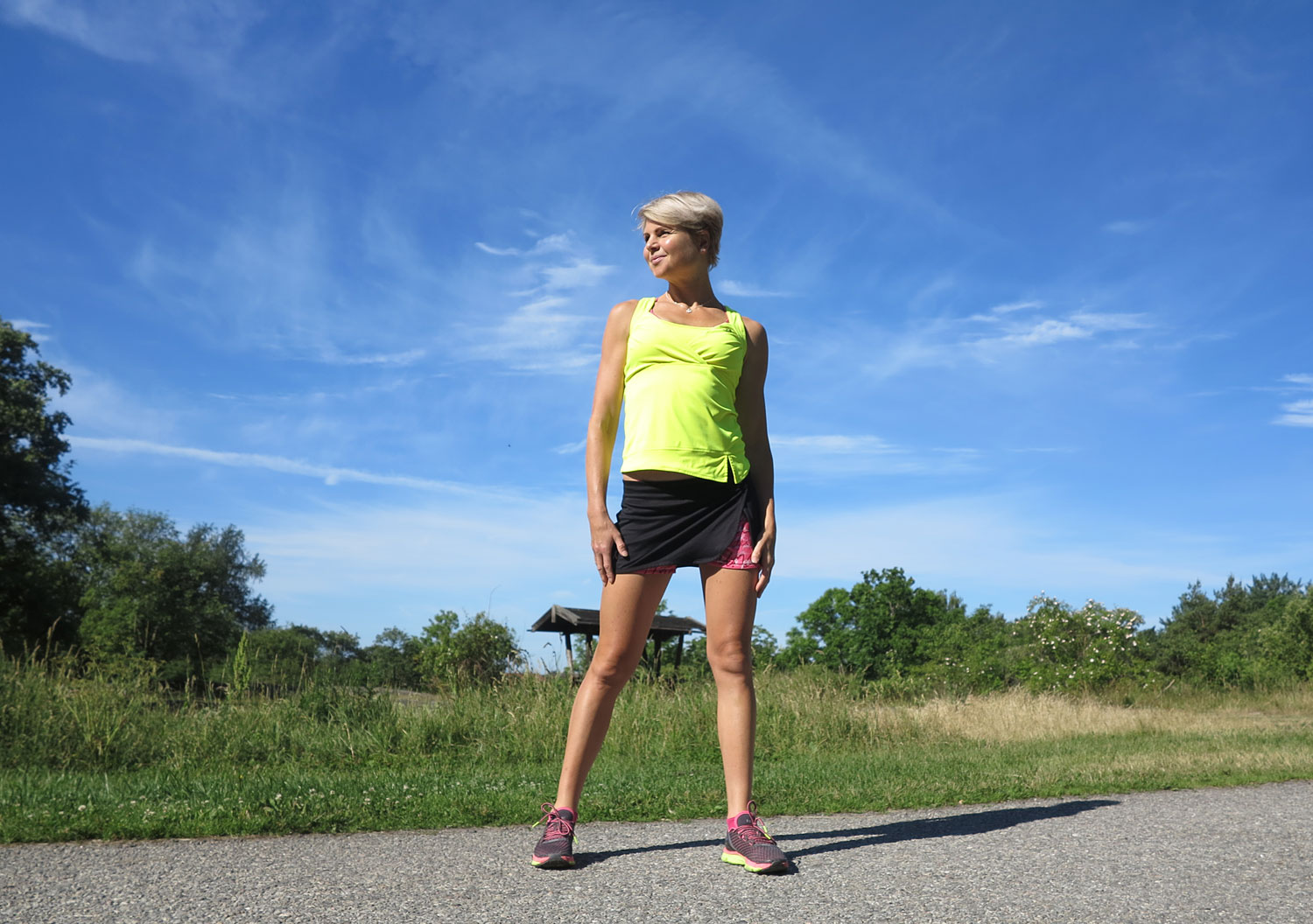 Träningskläder: linne – adidas, löpkjol och skor – Under Armour.
