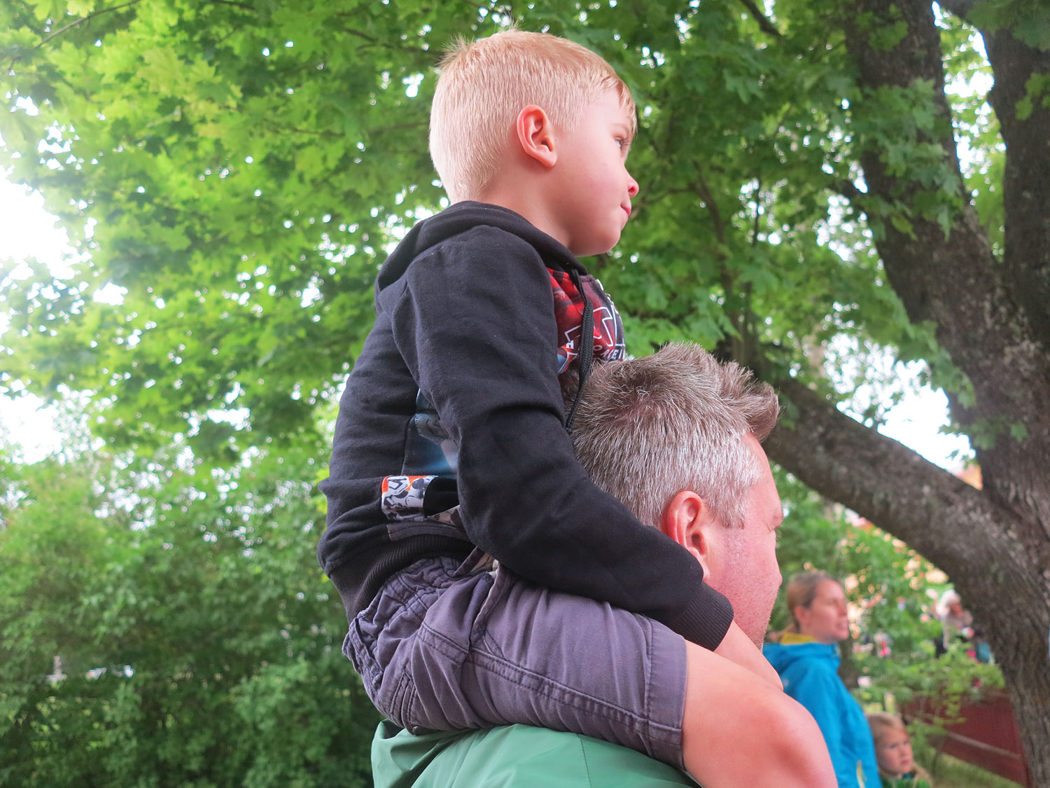 På midsommarafton vill jag ha klänning tänker jag varje år, men allt eftersom åkte både kofta och fleecejacka på. Det kom även några regndroppar, men det förhöjer känslan av svensk midsommar ännu mer tycker jag.