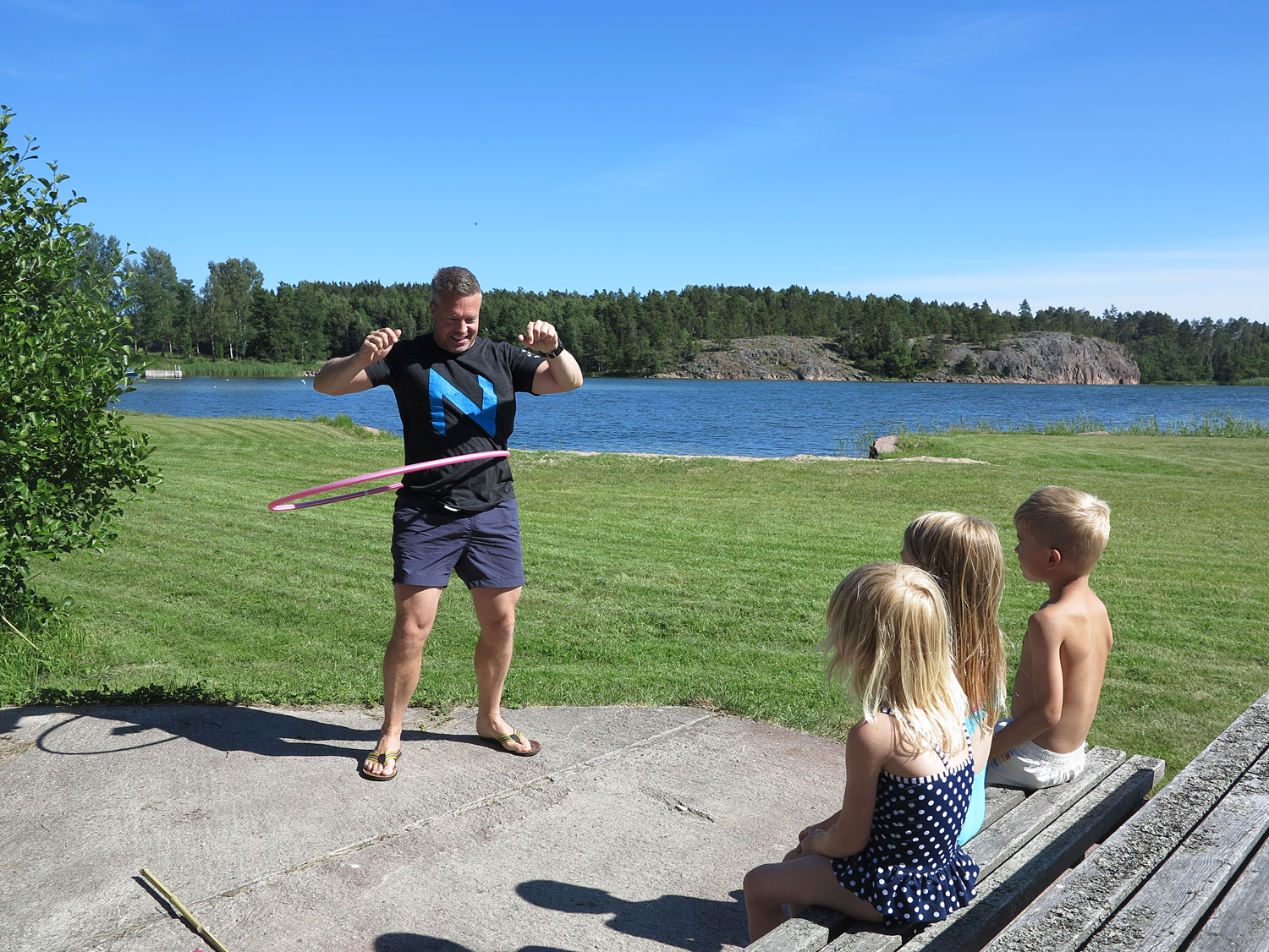 Det härliga med livet på landet. Att bara gå utanför dörren för att få vacker natur och lugn, sitta och prata, kasta pil och ägna sig åt andra mer och mindre komplicerade saker. Skönt tidsfördriv. Nu har vi bara en heldag kvar här på Åland innan hemresan mot stan. En helg där för att tvätta och packa om innan vi rockar vidare mot Jämtland.