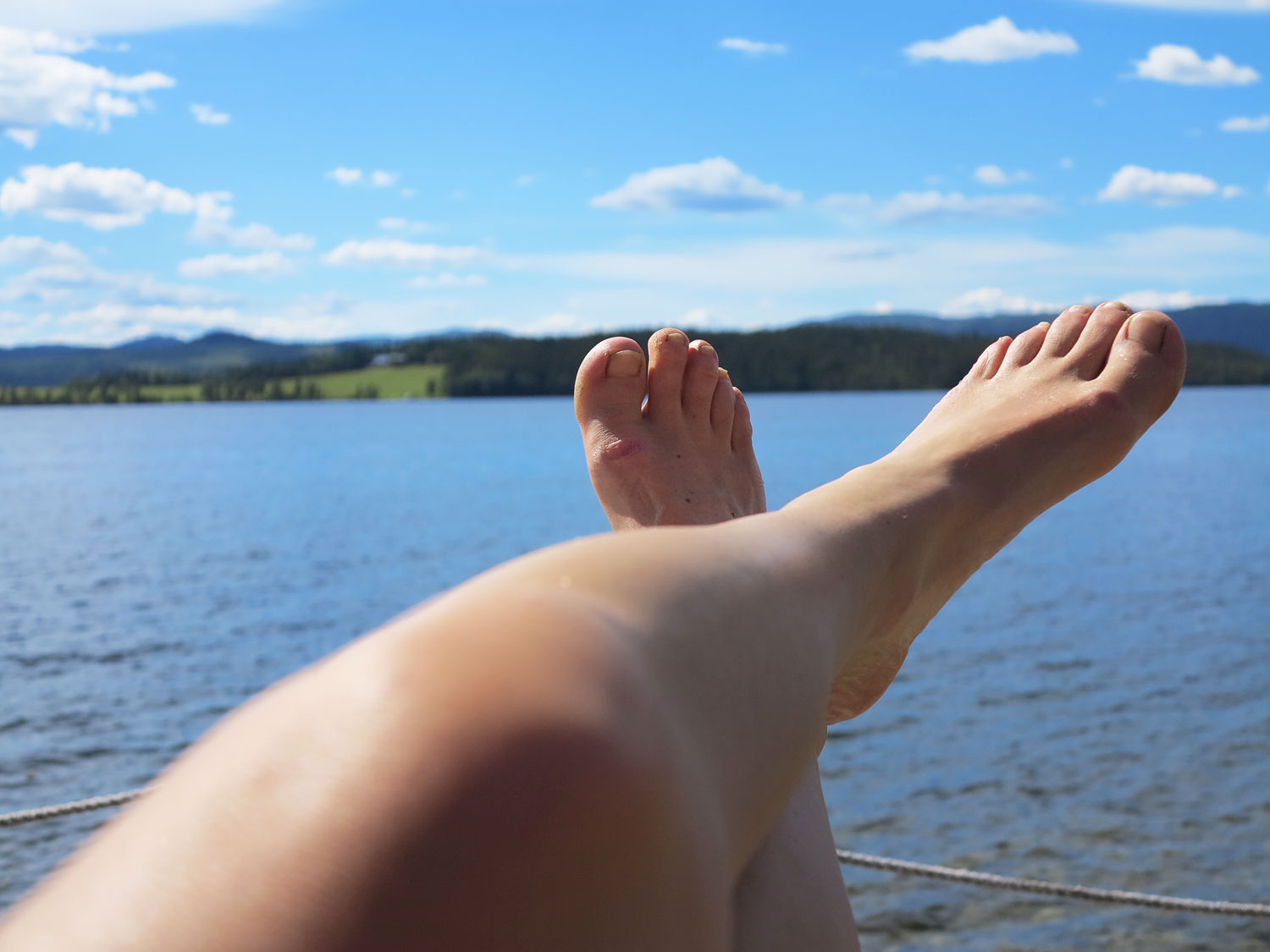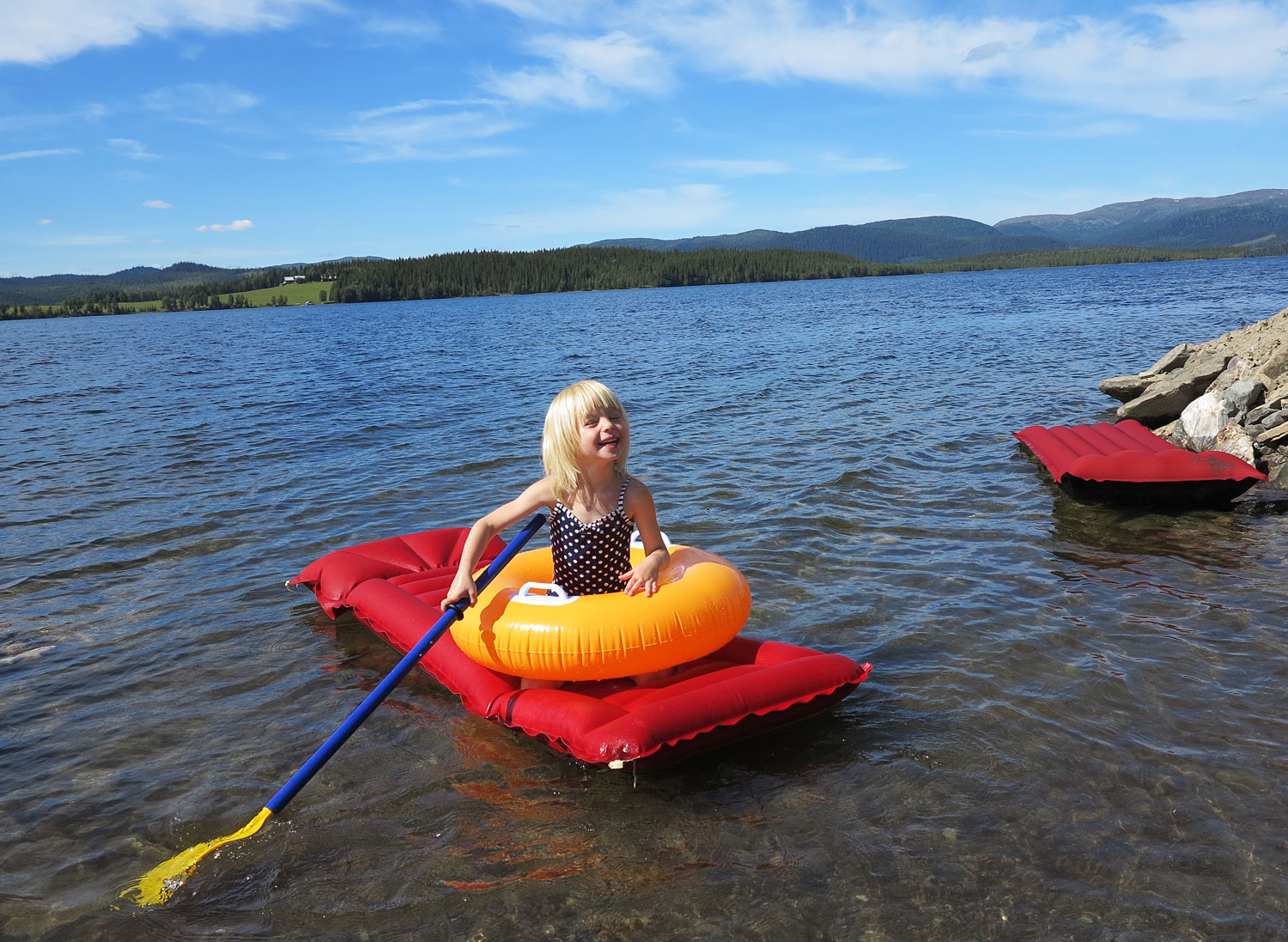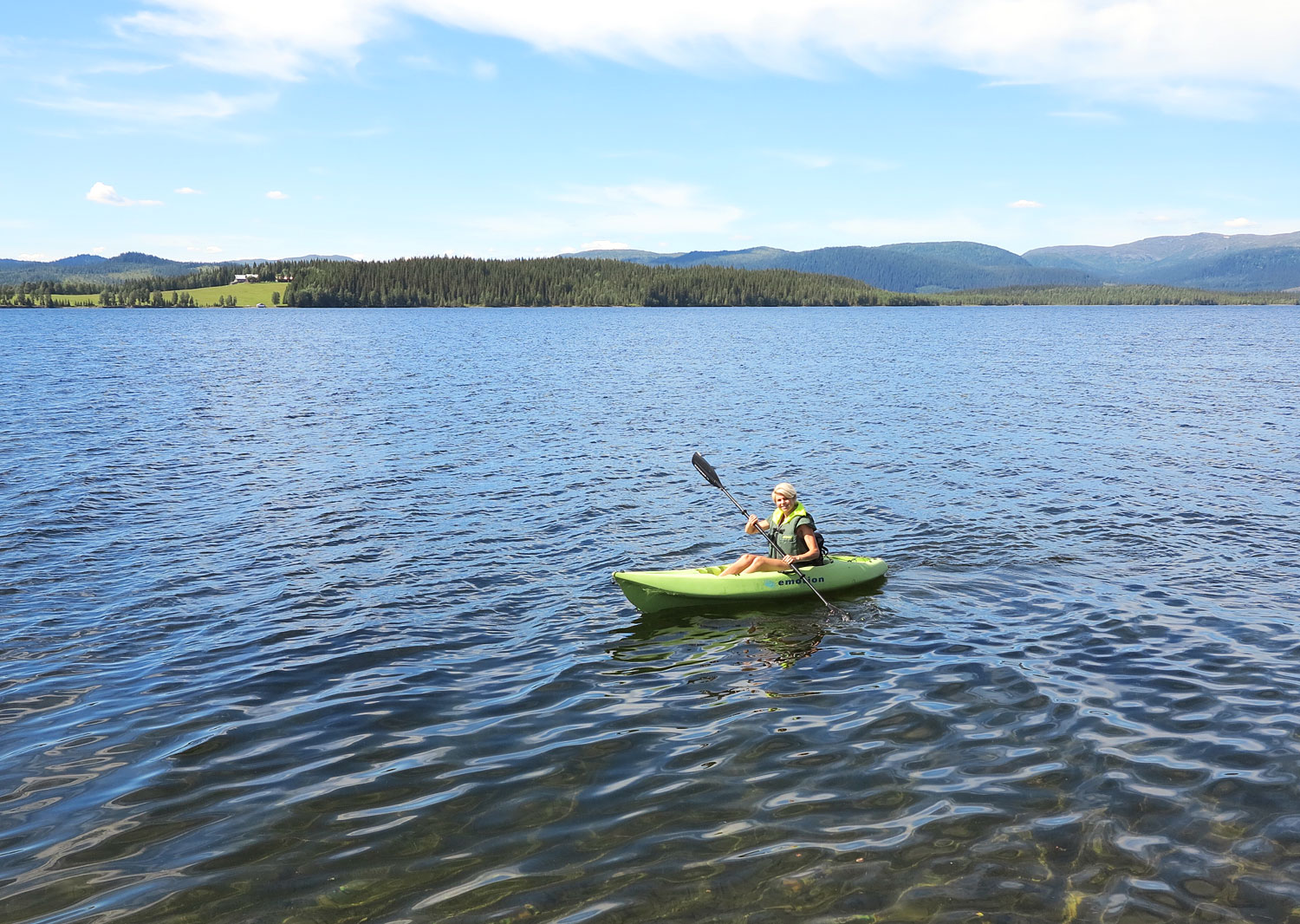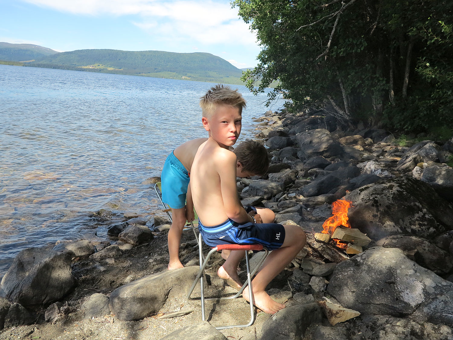 » Hela dagen spenderade vi nere vid sjön. Hugo och Hampus gjorde upp en egen liten brasa att grilla korv och pinndeg i, jag paddlade en tur med min fasters kajak och fotade massa bilder till en ny headerbild (kanske den överst i inlägget). Vi fikade, dödade ett gäng bromsar som var som galna kring benen, barnen badade och jag chillade mest i en solstol. Luftade mina sargade löparfötter. Pedikyr nästa!