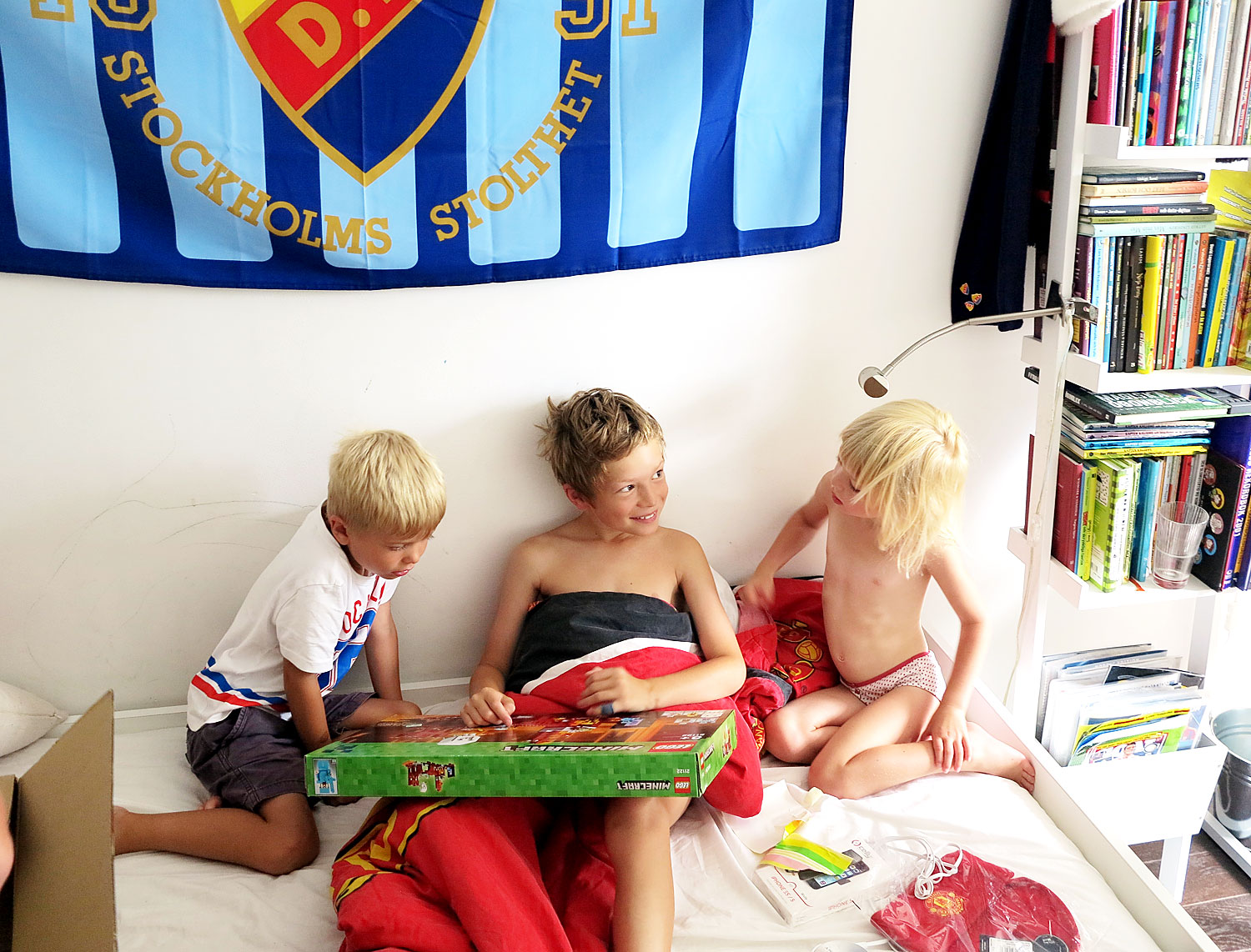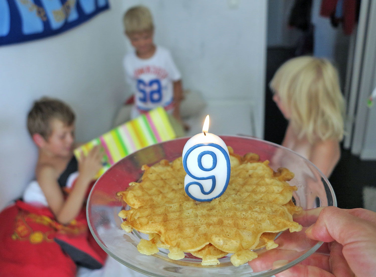 I onsdags var det ju Hampus födelsedag också, roligt för oss alla. Jag klev upp lite tidigare, förberedde våffelfrukost, sprang den korta Djurgårdsrundan och sen väckte vi honom med sång och presenter. Lego, Nintendo-spel, iPhone-fodral, fotboll och fotbollskort gjorde honom glad.