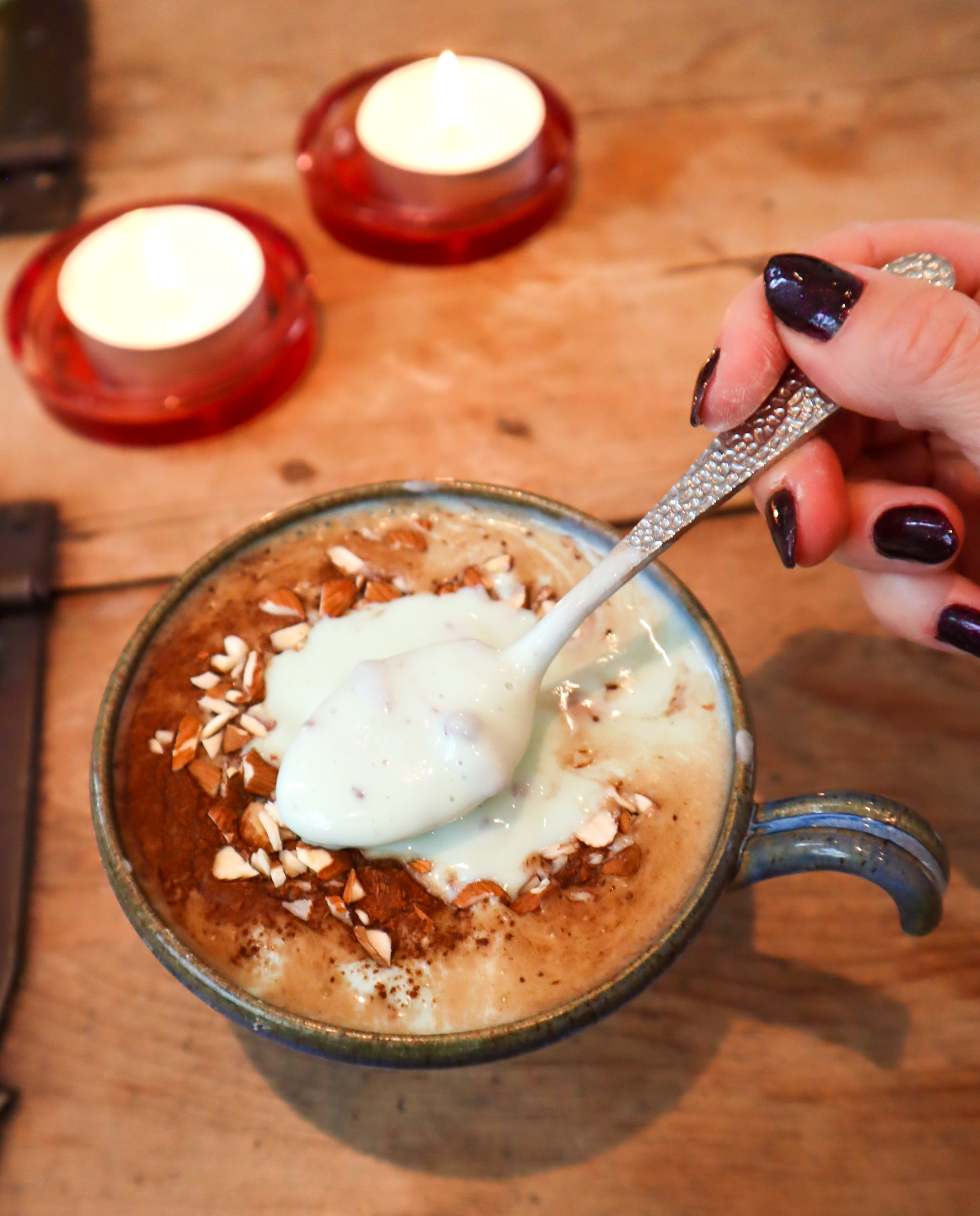 - Toppa med det du gillar, t.ex. pudrad kakao och nötter. Ät och njut!